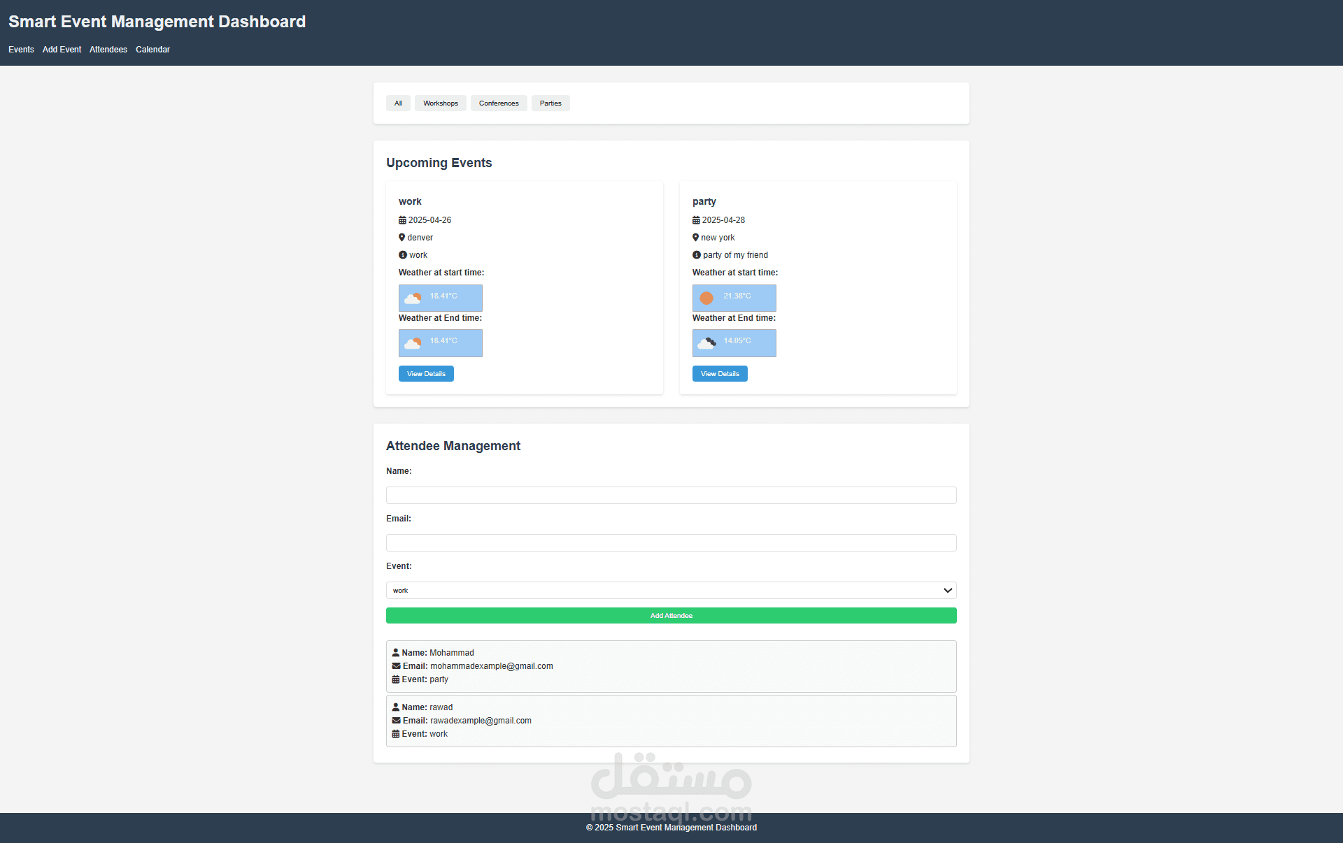 قمت بتصميم وتطوير لوحة تحكم ذكية لإدارة الفعاليات باستخدام HTML، CSS، JavaScript.