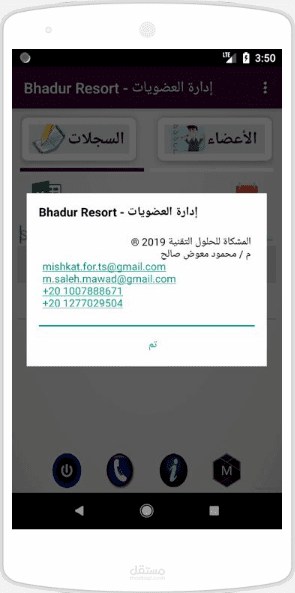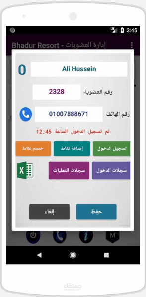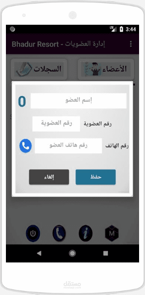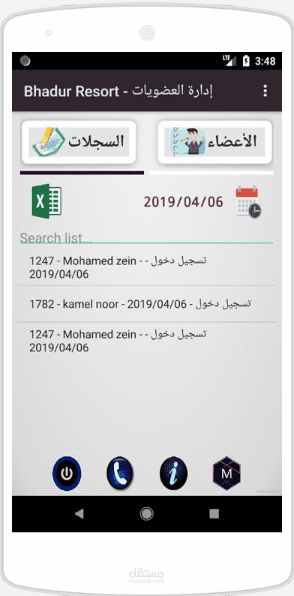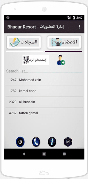 تطبيق لإدارة عضويات وسجلات نشاط زوار منتجع Bhadur بإستخدام نظام الـ QR Code للتعرف على هويات الأعضاء وتسجيل دخولهم ونقاطهم بإستعمال الهاتف الذكى.