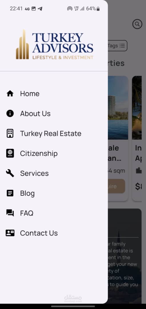 تطبيق Turkey Advisor هو دليلك الأمثل للعثور على العقارات المعروضة للبيع في تركيا. يعرض التطبيق مجموعة واسعة من الشقق، الفلل، والعقارات التجارية مع تفاصيل دقيقة تشمل الأسعار، المواقع، والمواصفات. سواء كنت مستثمرًا أو تبحث عن منزل جديد، يوفر لك Turkey Advisor تجربة سهلة وموثوقة للعثور على العقار المناسب.