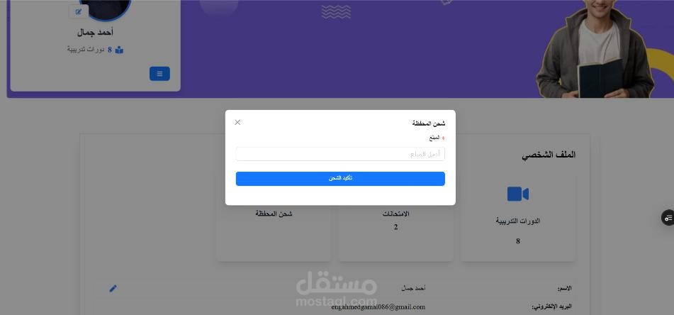 محفظة إلكترونية لشراء الدورات وشحن الرصيد