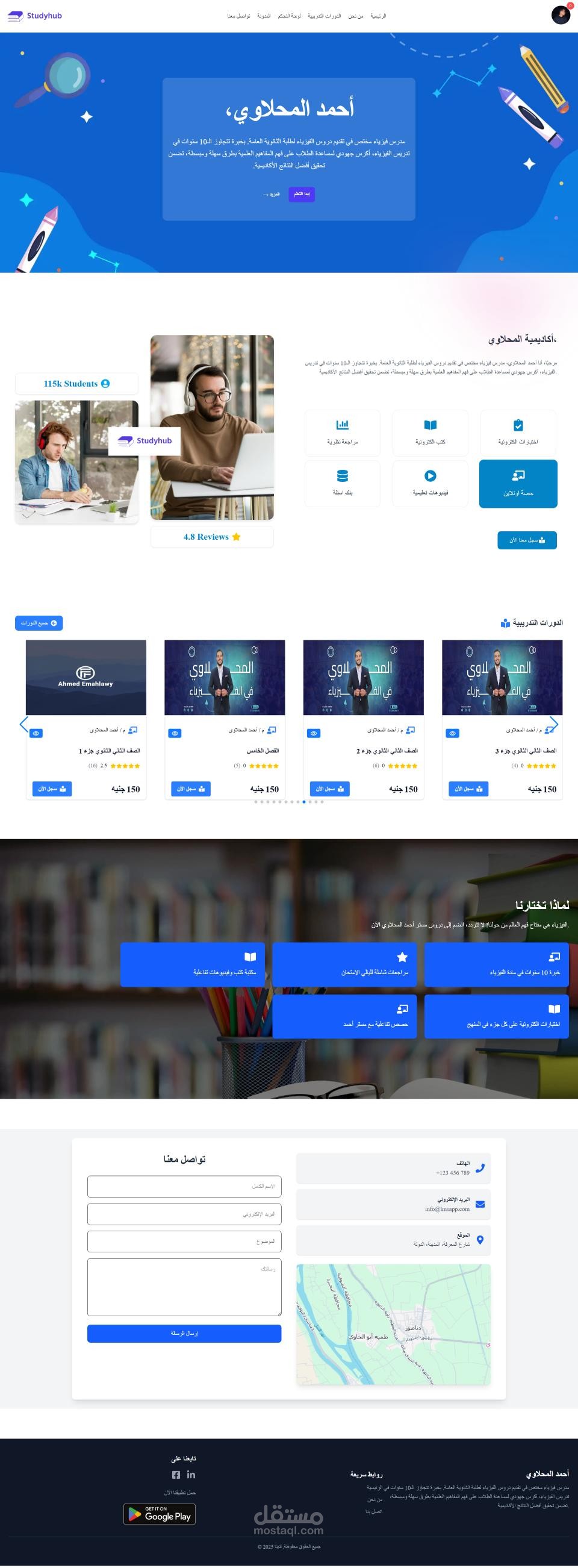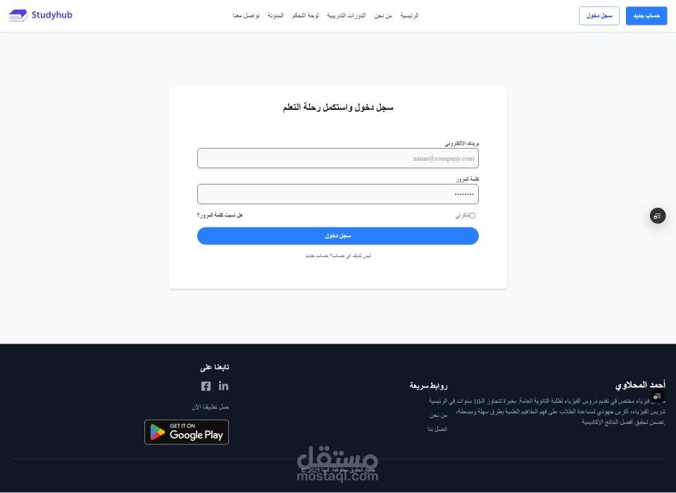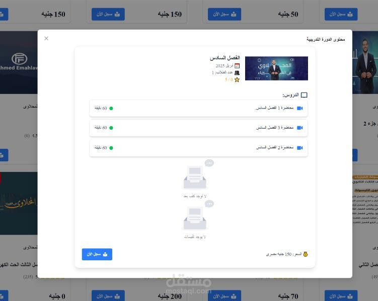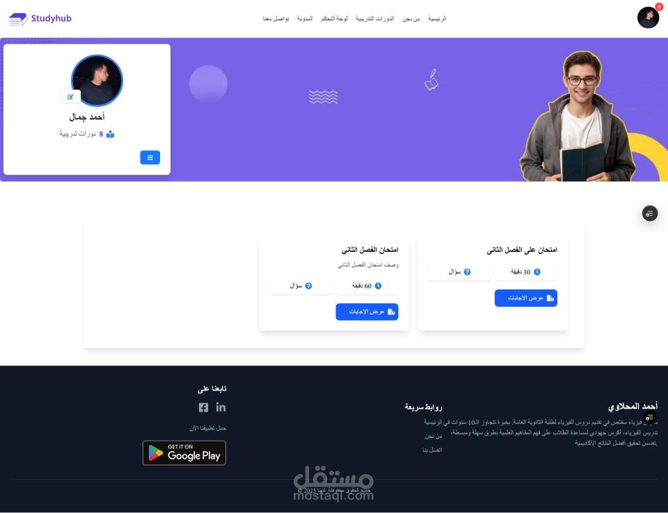 تم بحمد الله إنشاء منصة تعليمية حديثة بتقنيات Laravel & Next.js مع تطبيق موبايل بـ Flutter، توفر تجربة سلسة وسريعة للطلاب والمعلمين.