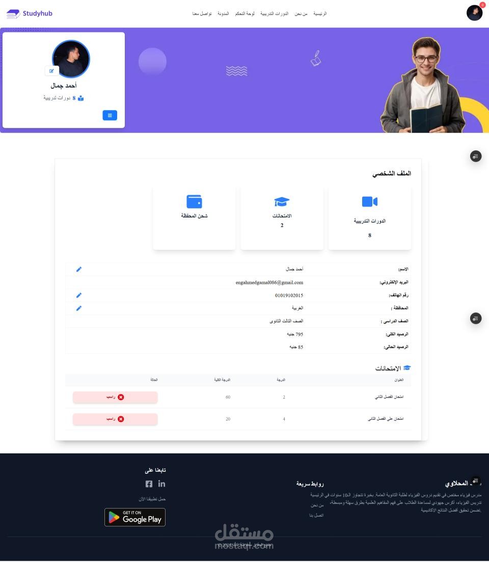 لوحة تحكم متكاملة للطالب والمعلم