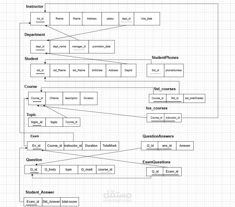 The Online Examination System is a database solution designed to manage and automate the administration of online exams. It facilitates various operations such as exam creation, student management, and report generation for ITI staff. This project includes the following key components: