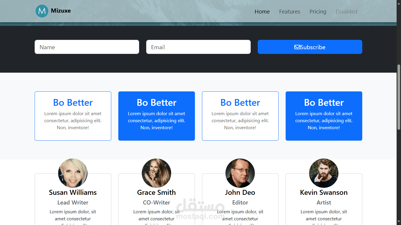 موقع بسيط تم تطويره باستخدام HTML, CSS, JavaScript, Bootstrap