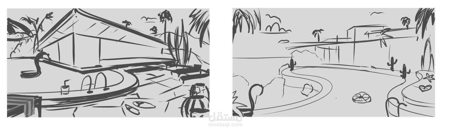 الخطوط كانت اغلبها حادة ولكن ادخلت خطوط منحنية لكسر الحدة واضفاء شكل لطيف مناسب للاجواء