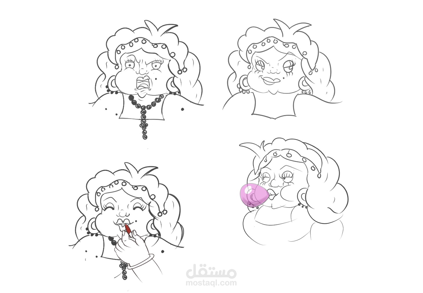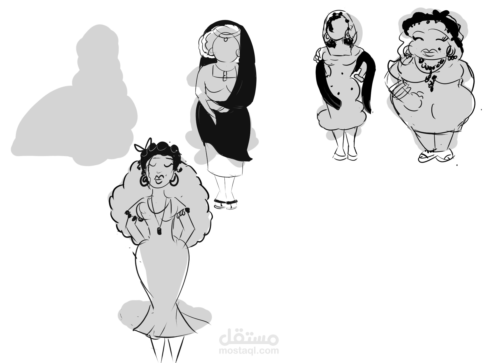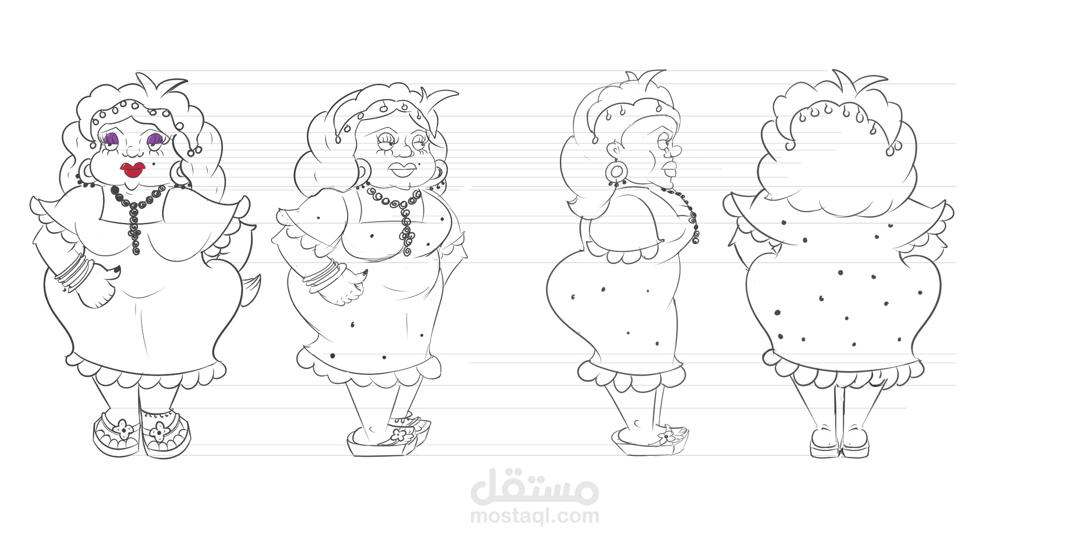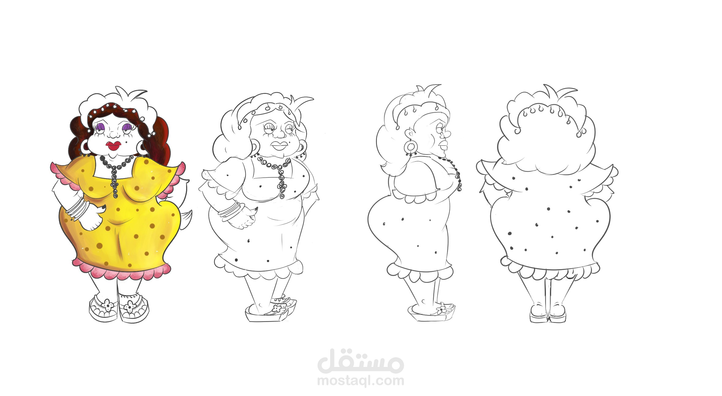 تصميم شخصية كارتونية لسيدة اربعينية شعبية