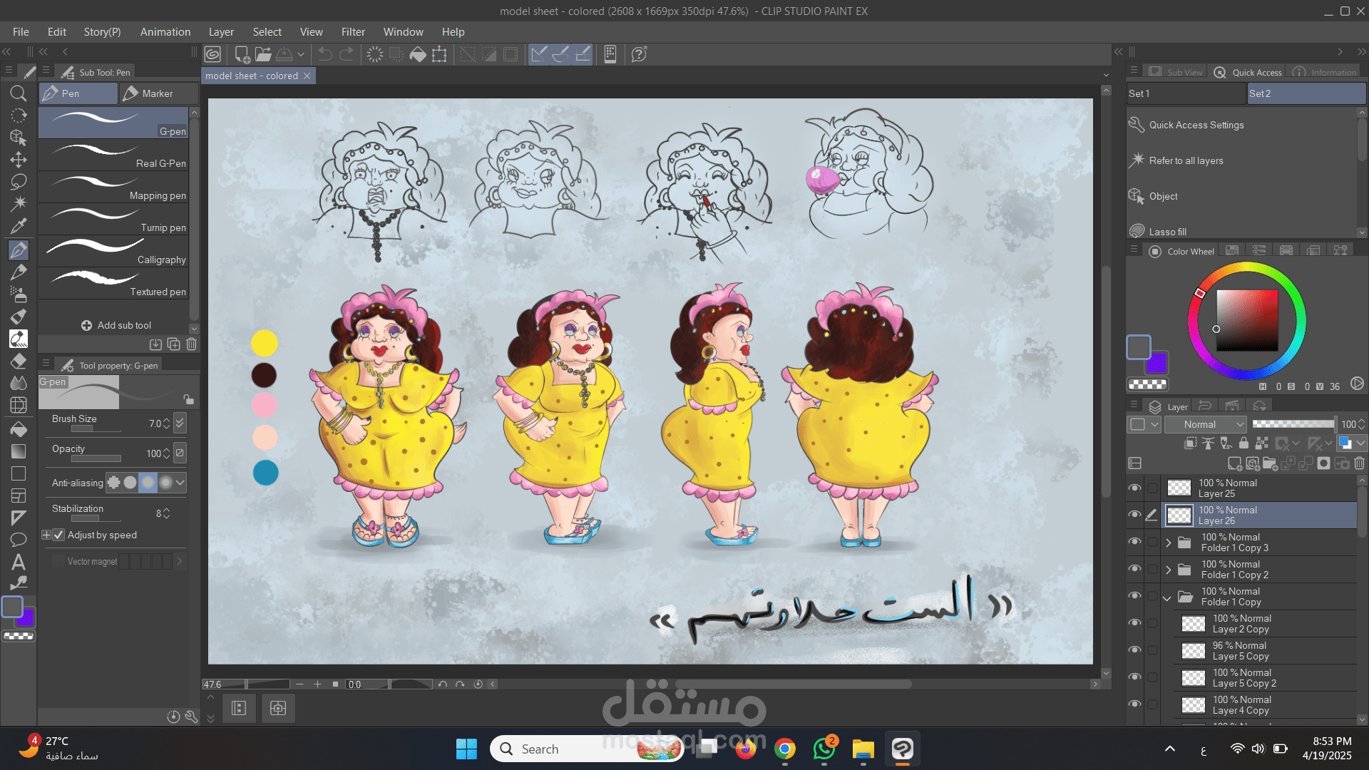 قمت برسم وتلوين شخصية كارتونية باستخدام برنامج كليب ستوديو
