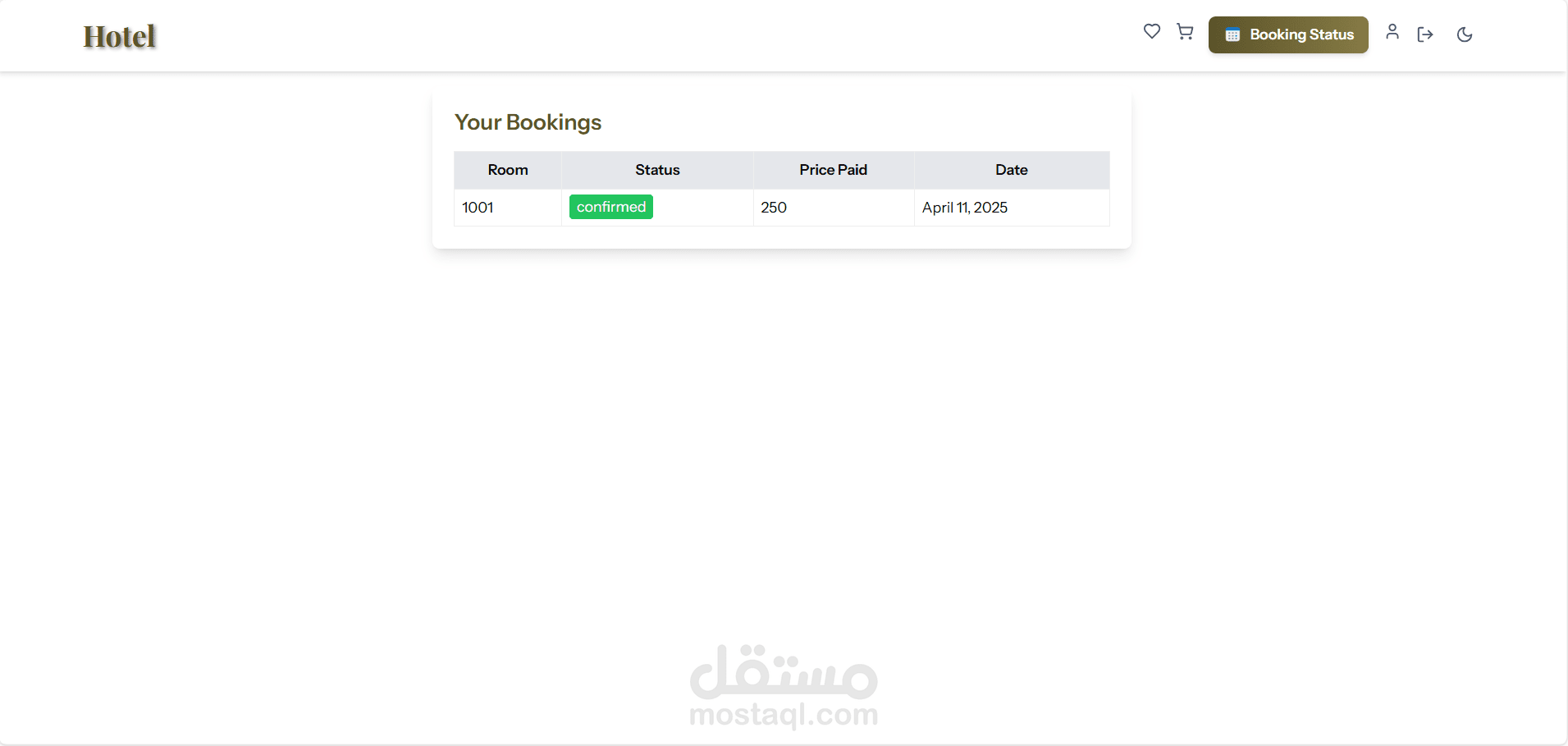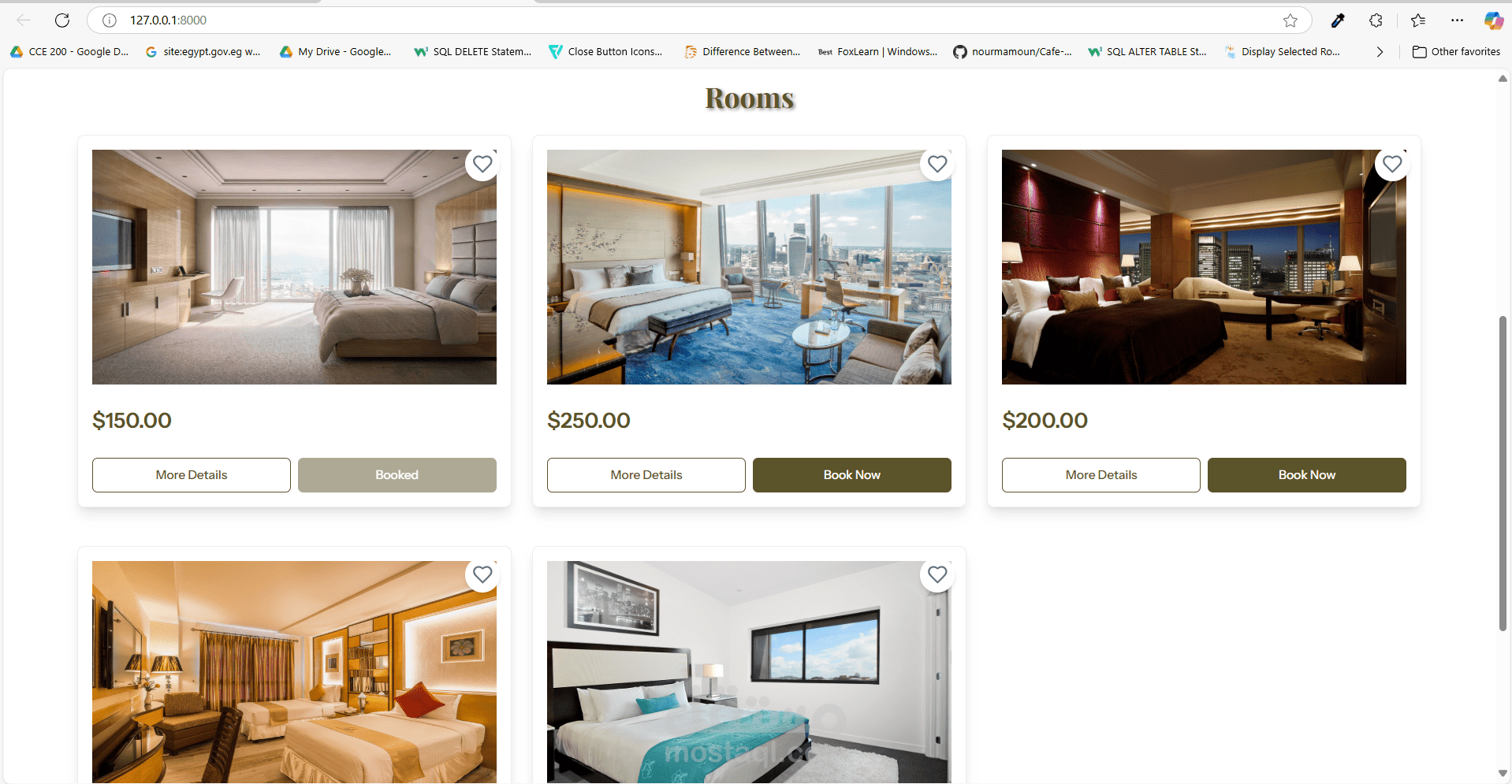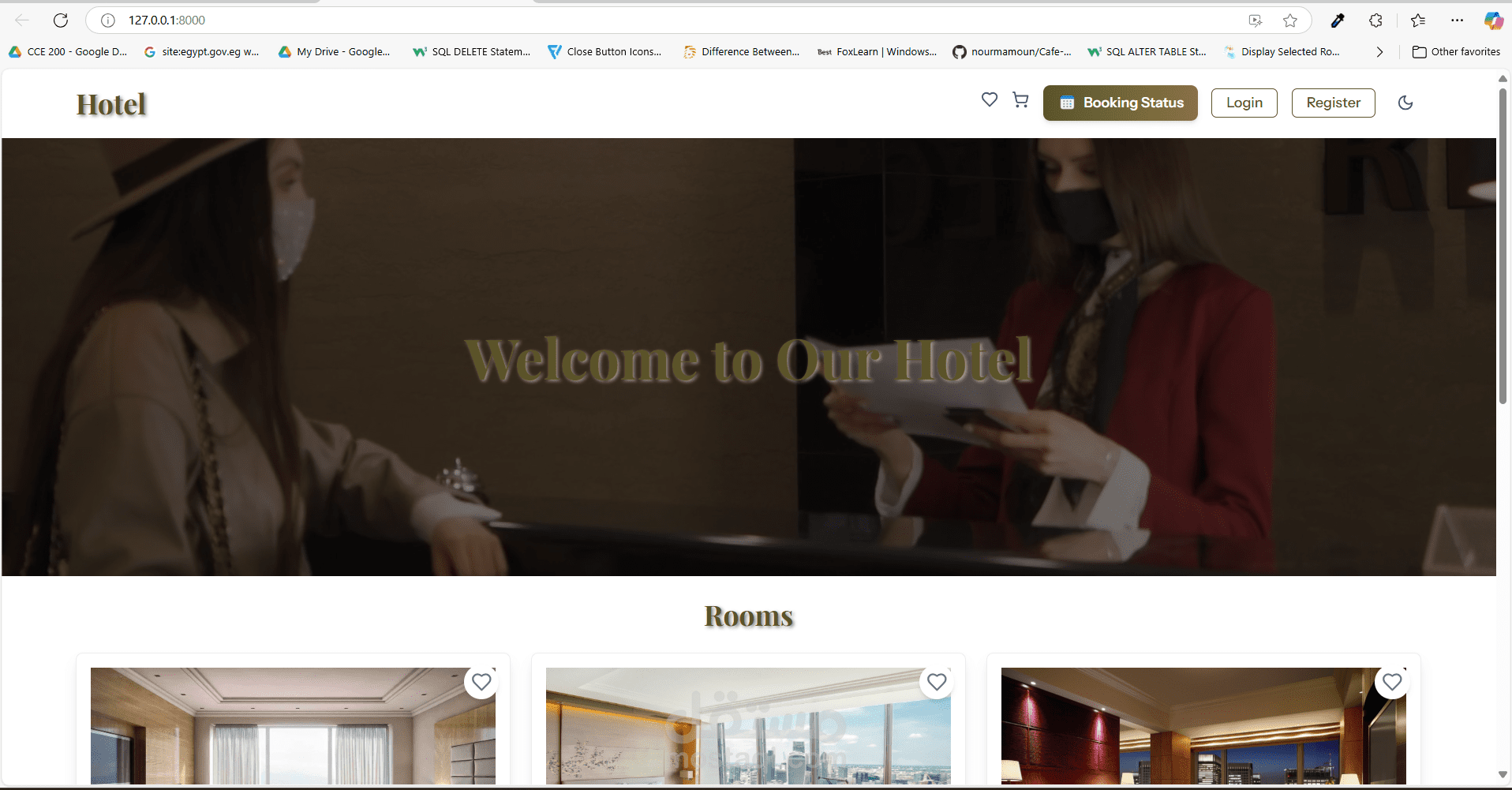 تم تطوير نظام حجز الفنادق — منصة عملية وسهلة الاستخدام تهدف إلى تبسيط عملية حجز الغرف للمستخدمين، وتوفير أدوات إدارة فعّالة لموظفي الفندق. كان مشروعًا مثمرًا ركزت فيه على تلبية الاحتياجات الحقيقية وتقديم تجربة سلسة للجميع.