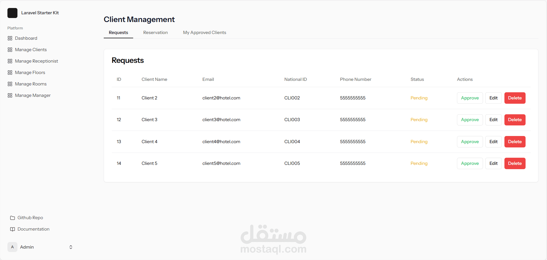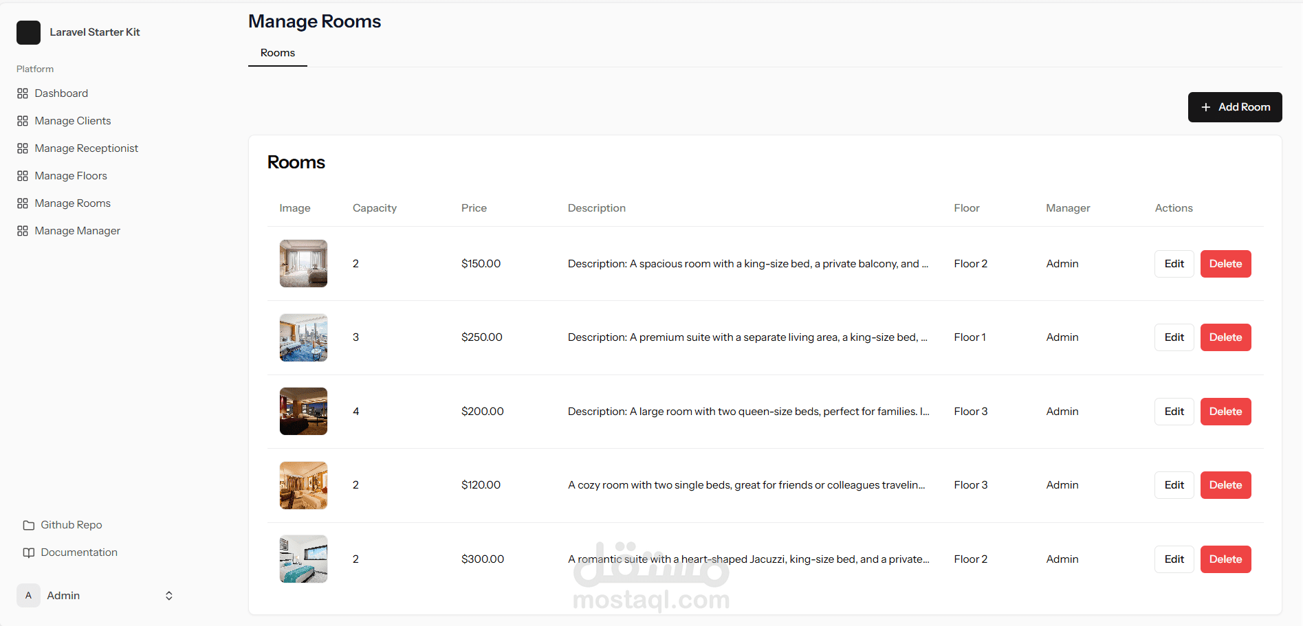 لوحة تحكم للإدارة: إدارة فعالة للغرف والحجوزات وصلاحيات المستخدمين.