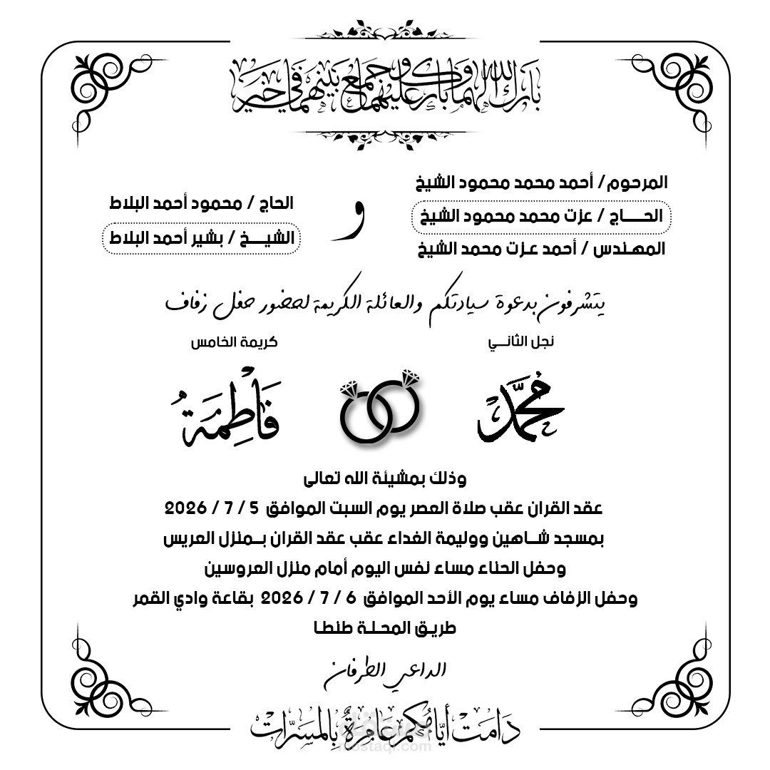 كرت دعوة زفاف
