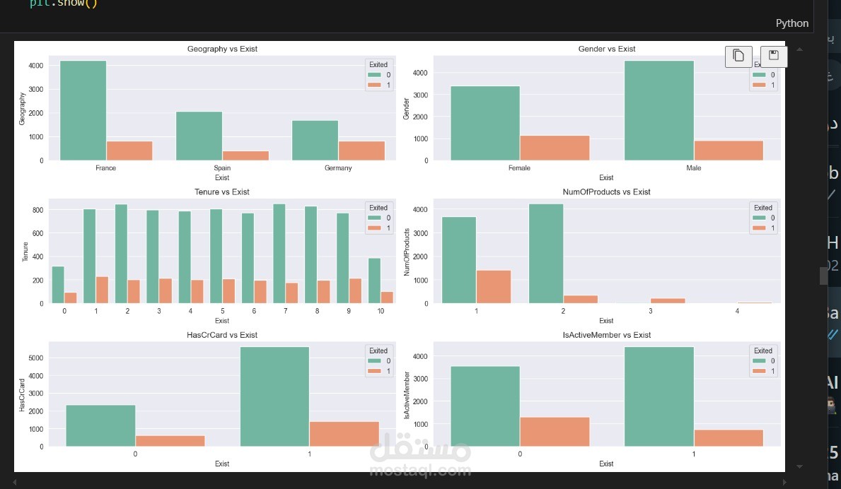 يهدف هذا المشروع إلى تحليل بيانات مغادرة العملاء (Churn) والتنبؤ باحتمالية مغادرة العميل للبنك. تم تنفيذ هذا المشروع باستخدام لغة البرمجة بايثون ومكتبات علم البيانات الشائعة مثل Pandas، Seaborn، Scikit-learn، بالإضافة إلى تطبيق العديد من نماذج التصنيف المتقدمة.