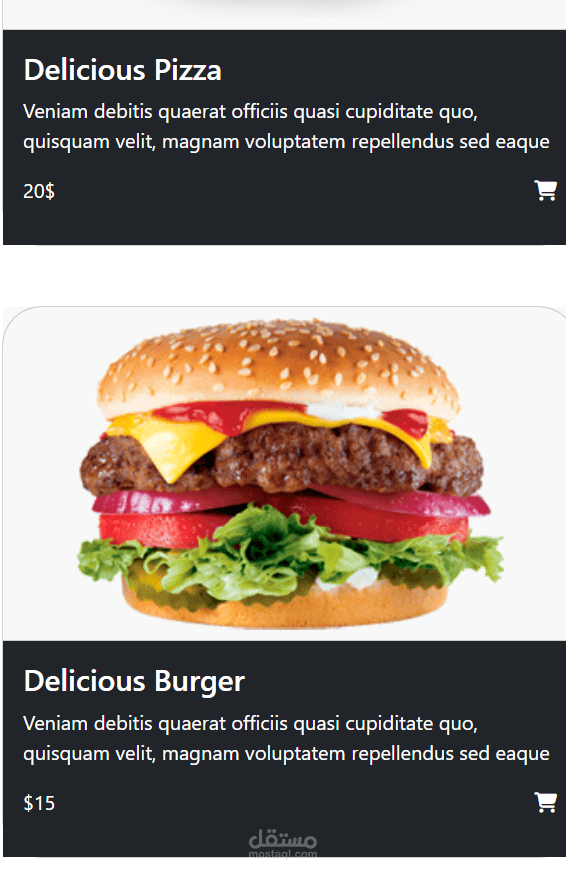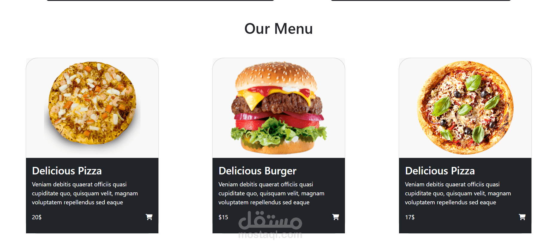 وواجهة لموقع إلكتروني لمطعم، متناسقة مع جميع أنواع الهواتف واللابتوبات وأجهزة الحاسوب باستخدام Html , CSS , JAVA SCRIPT BOOTSTRAP , REACT JS