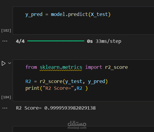 تقييم أداء النموذج باستخدام مؤشرات مثل MSE و RMSE.