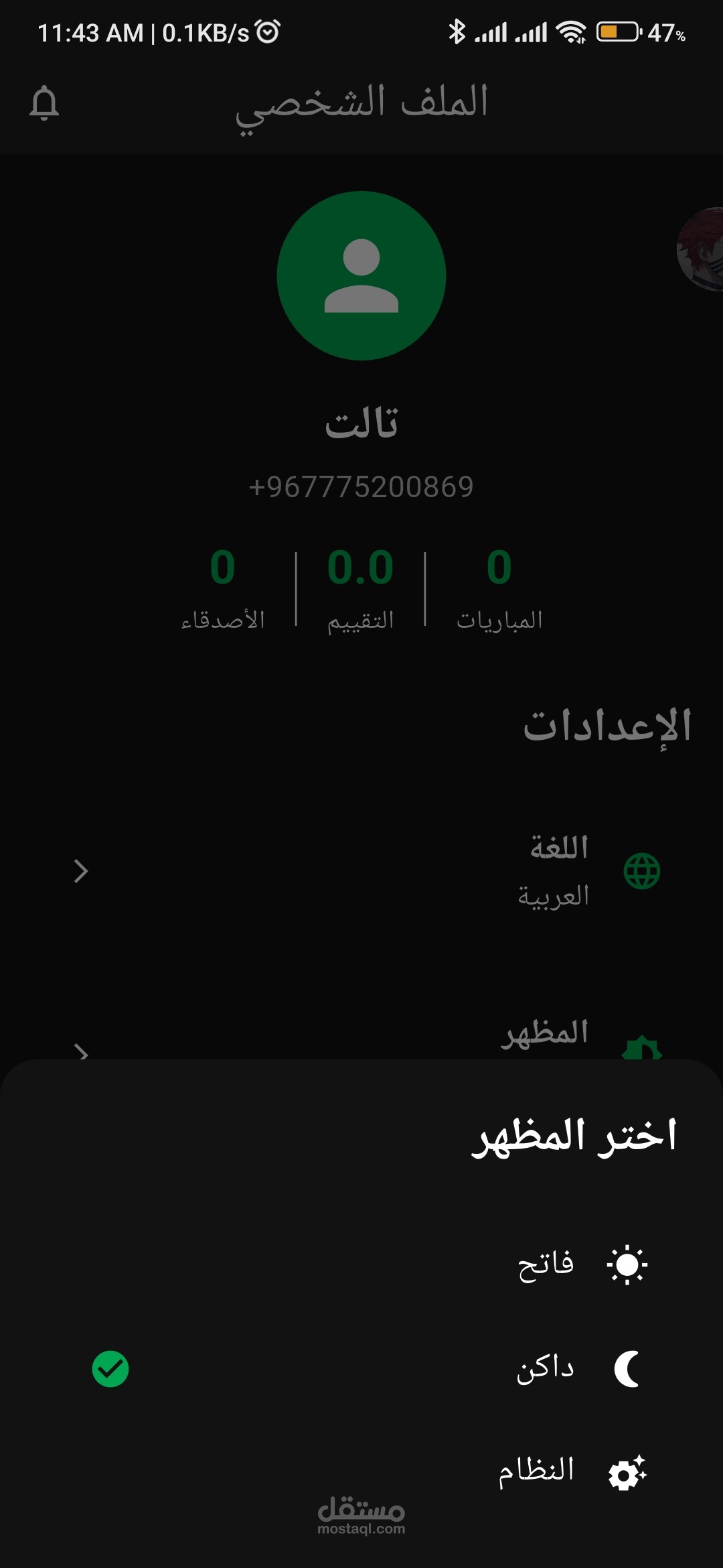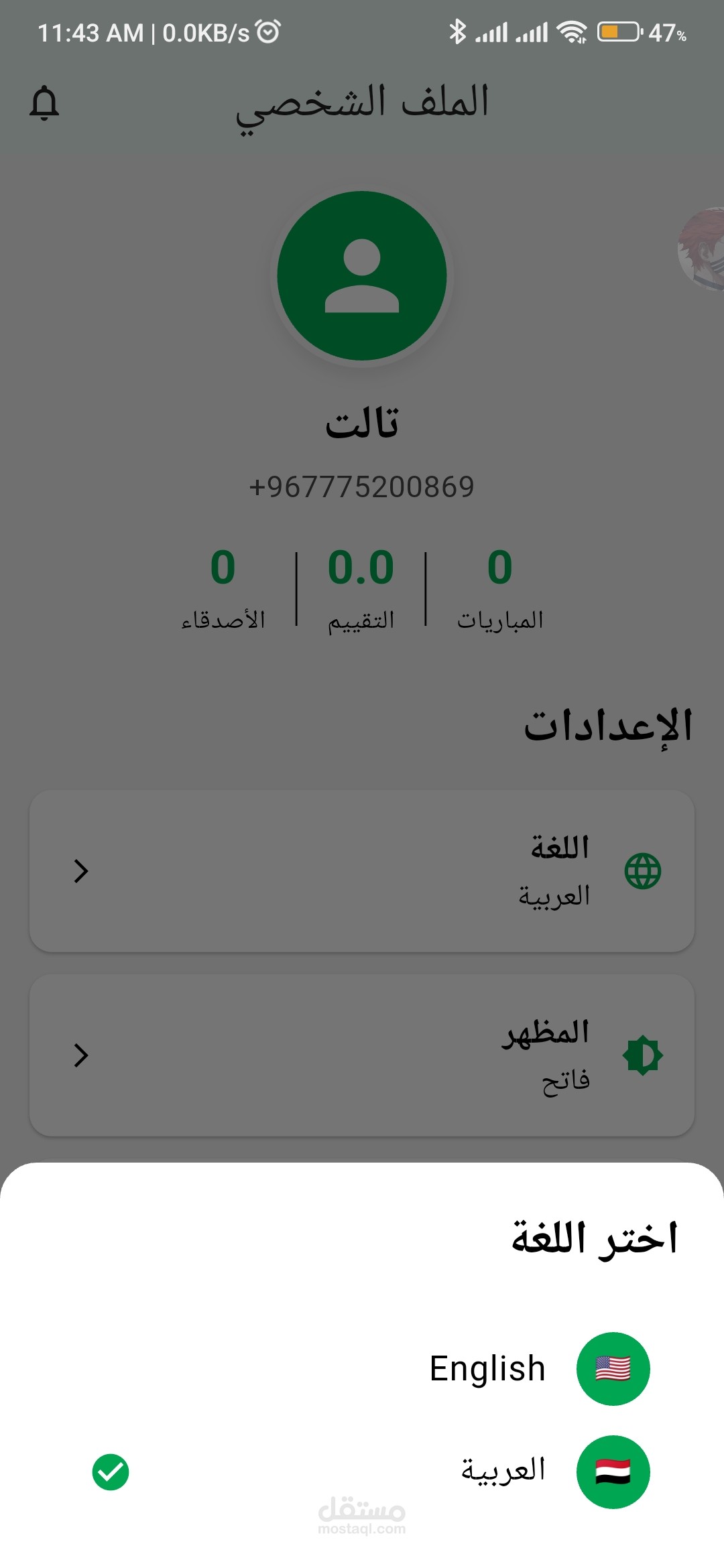 إمكانية إنشاء مباراة ودعوة لاعبين.
