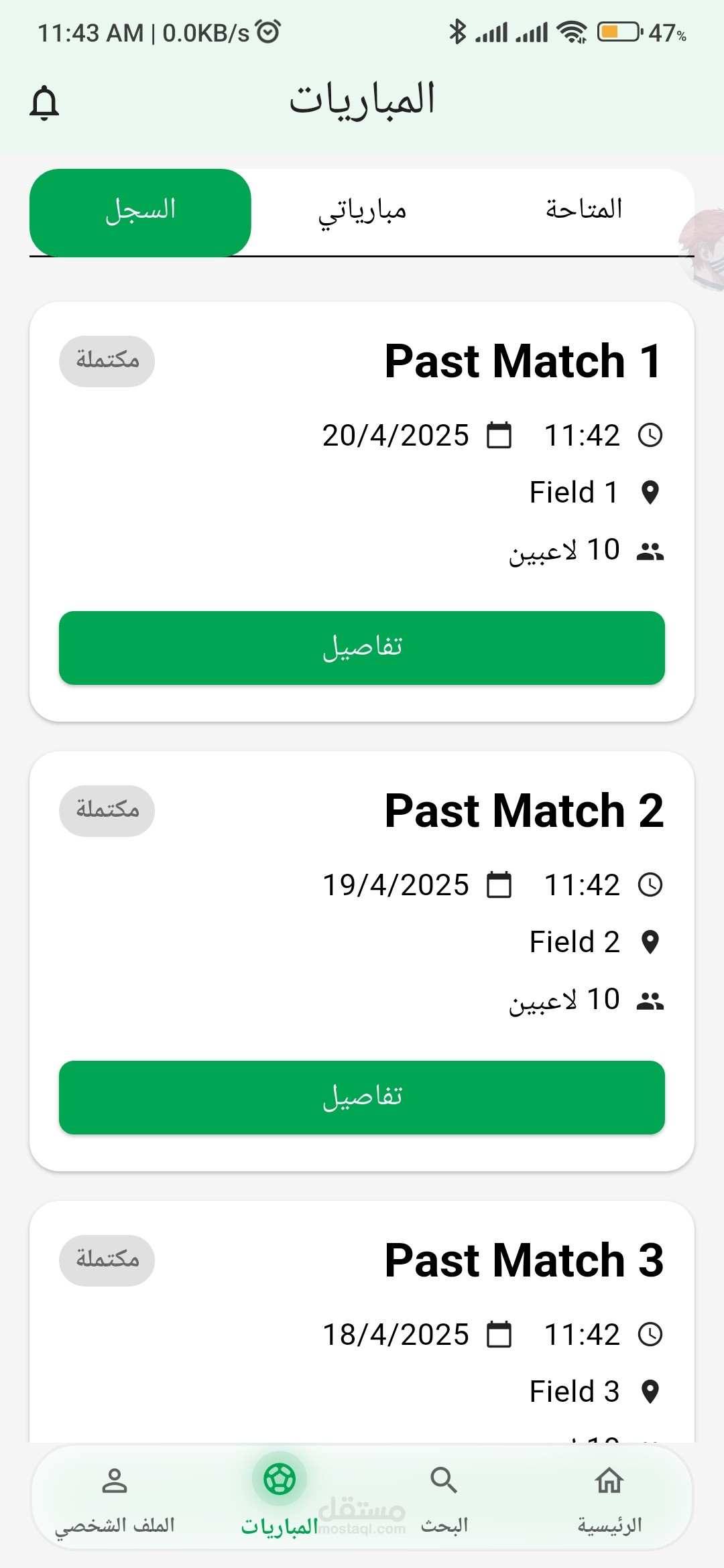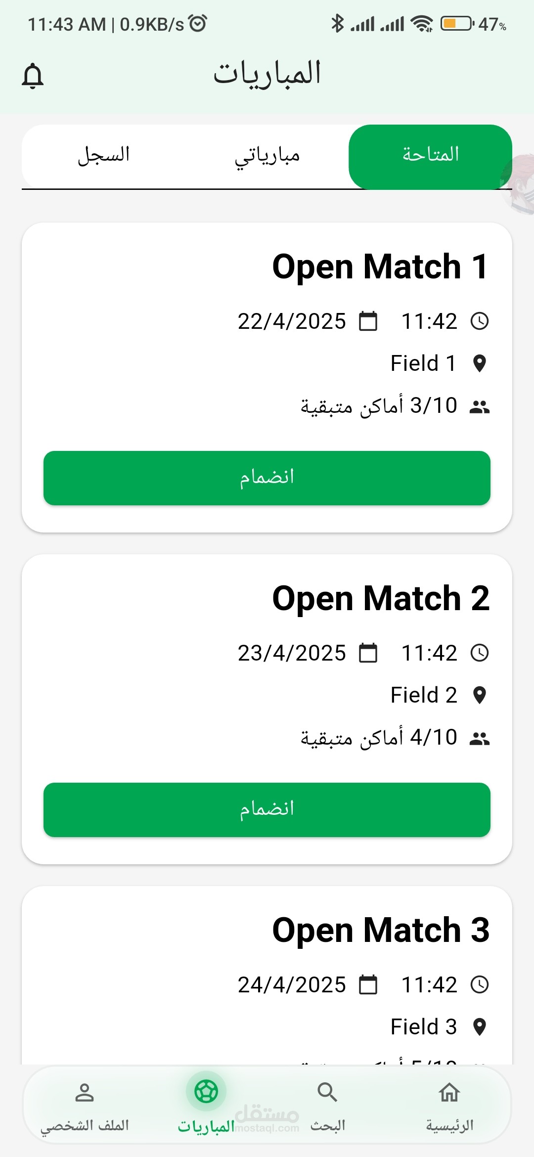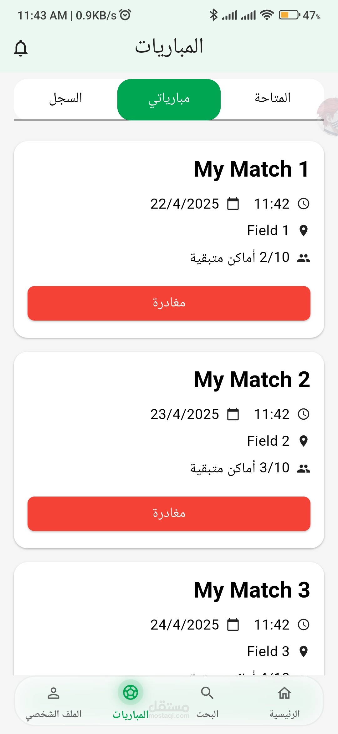 عرض مبارياتك القادمة أو التي تم دعوتك لها.