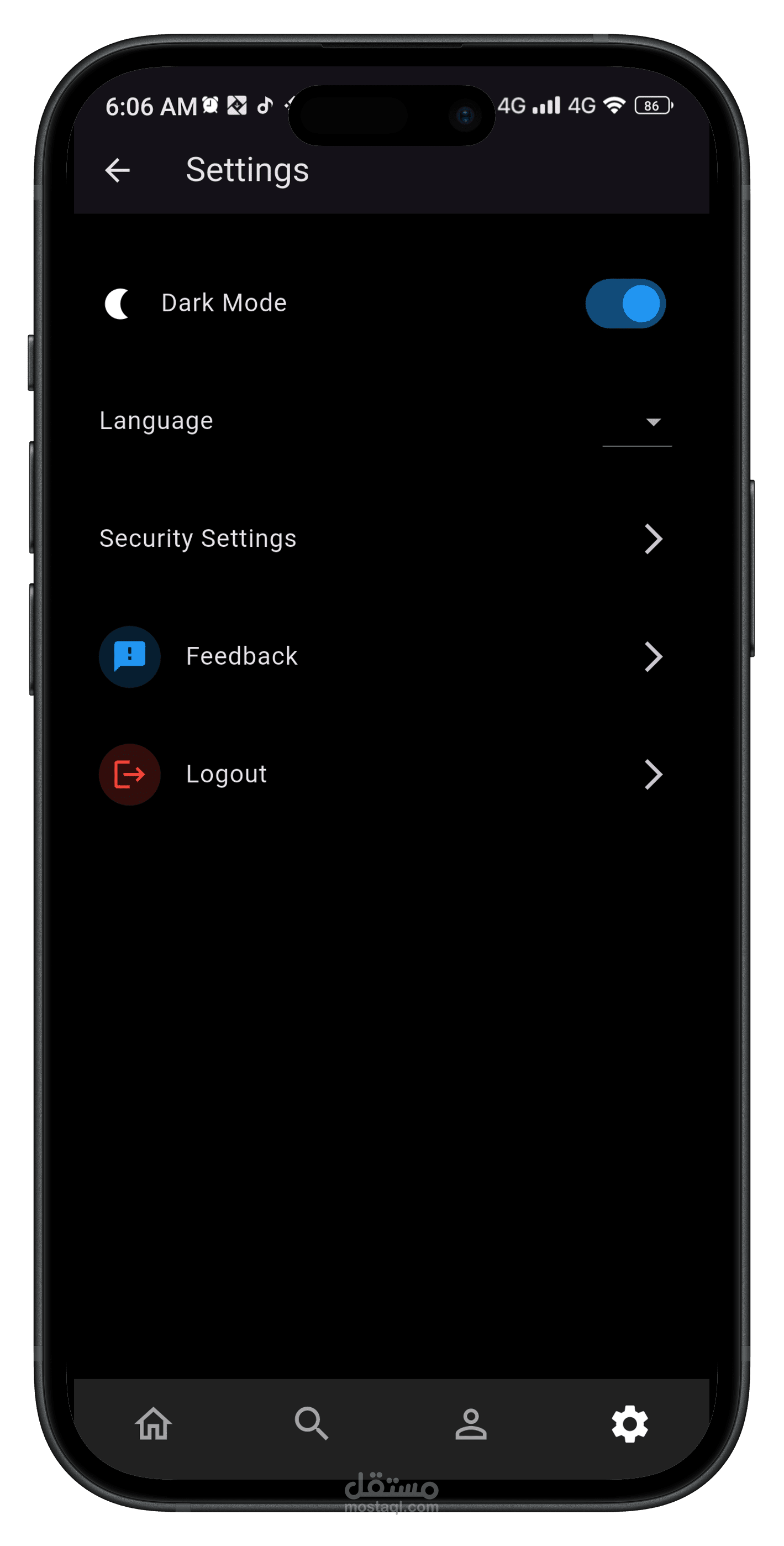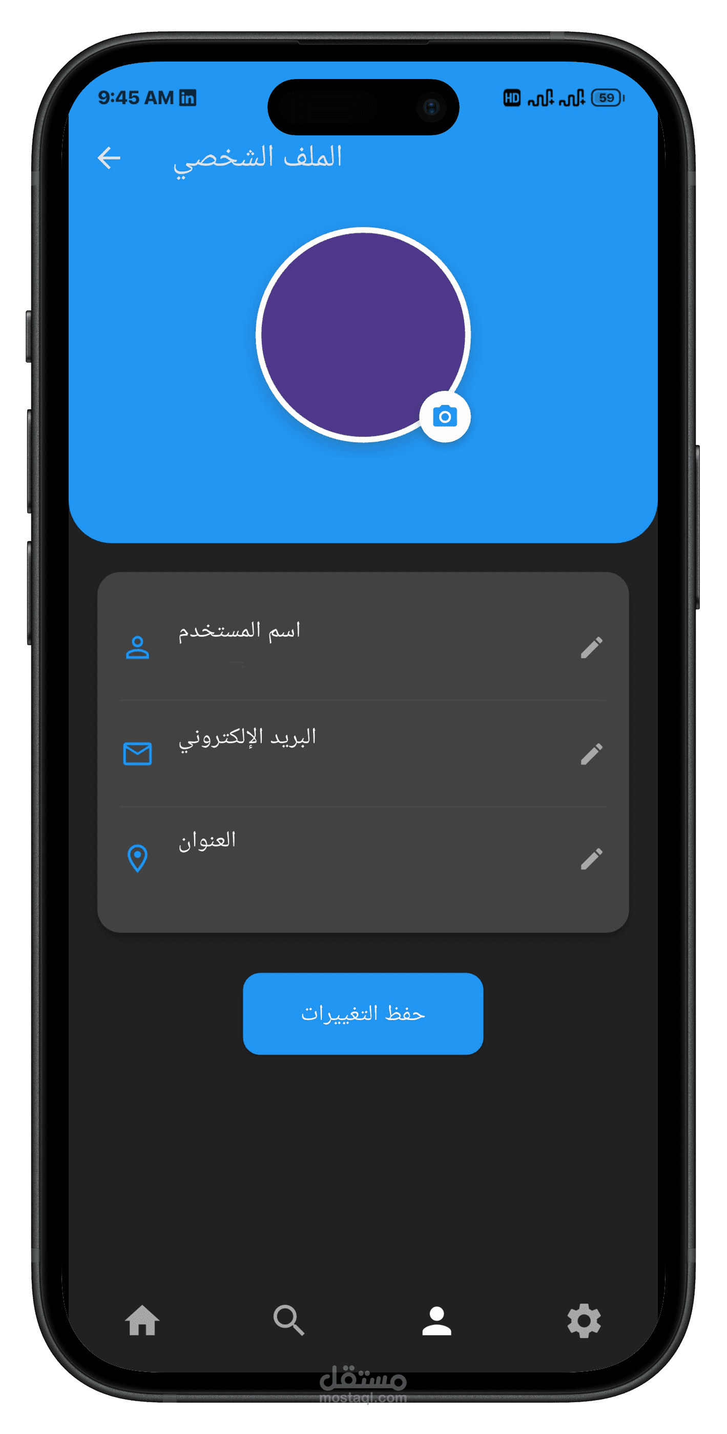 واجهة مستخدم عصرية تعتمد على شريط تنقل سفلي (Bottom Navigation Bar) لتسهيل التنقل بين الشاشات.
