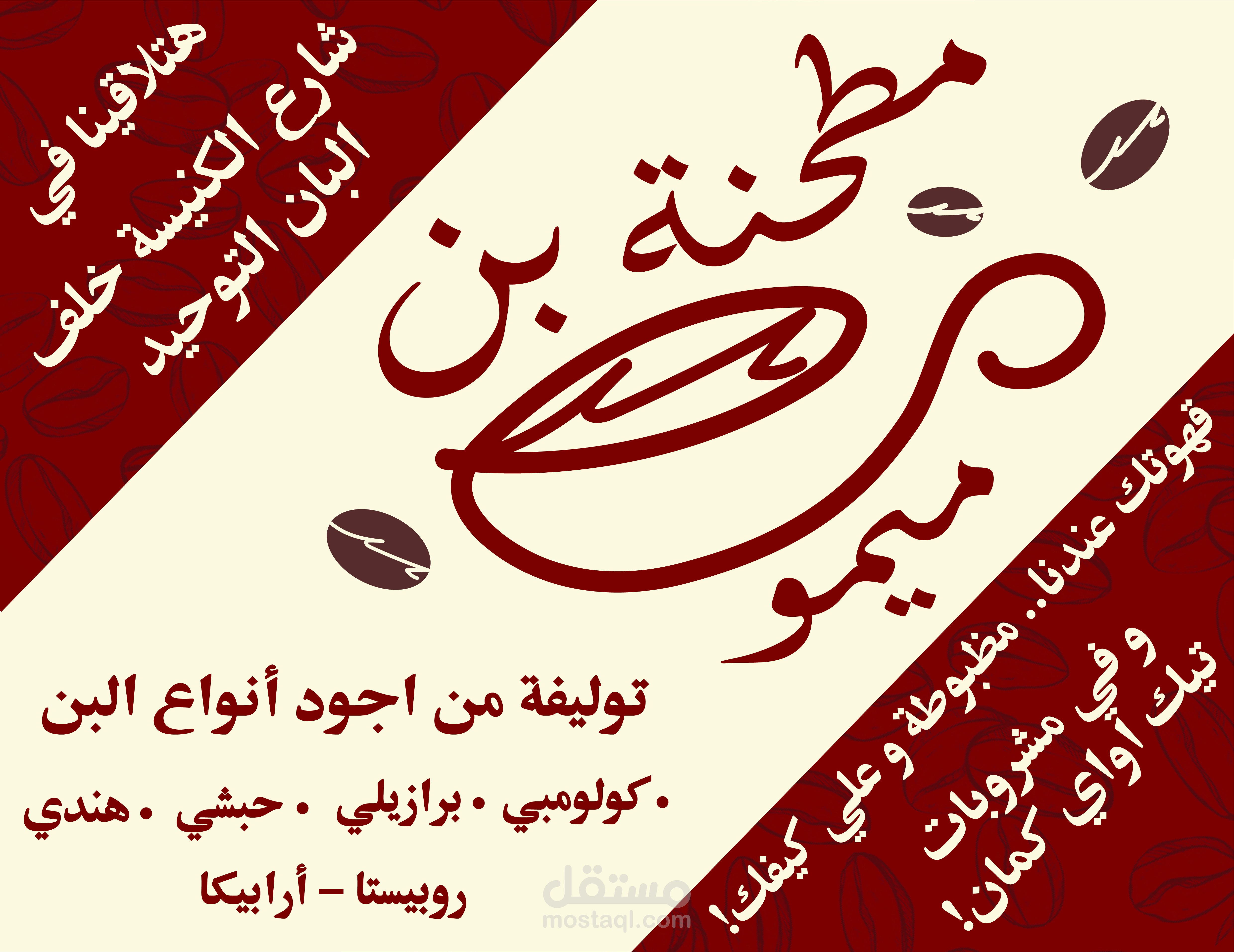 تصميم لوجو و هوية معرفية لمطحنة قهوة موجودة بدكرنس (احد مراكز محافظة الدقهلية). تم استخدام Adope Illustrator و Photoshop لعمل التصميم و Adope Dimension لعمل ال Mockup.