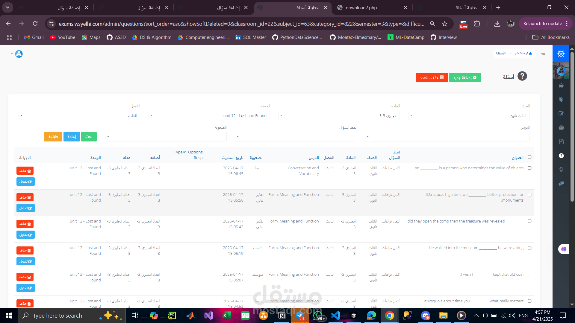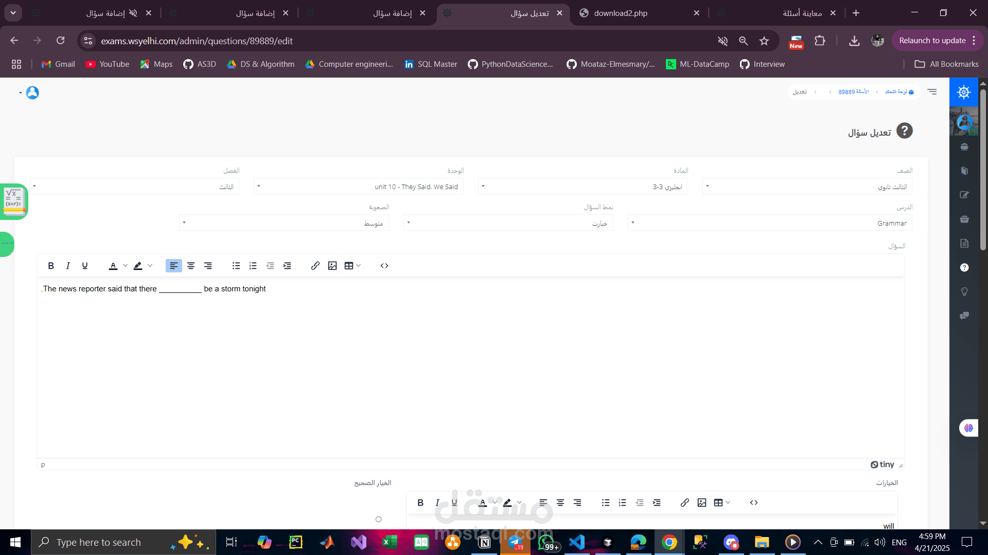 كتابة وتنظيم الأسئلة مباشرة على موقع بنك الأسئلة المطلوب.