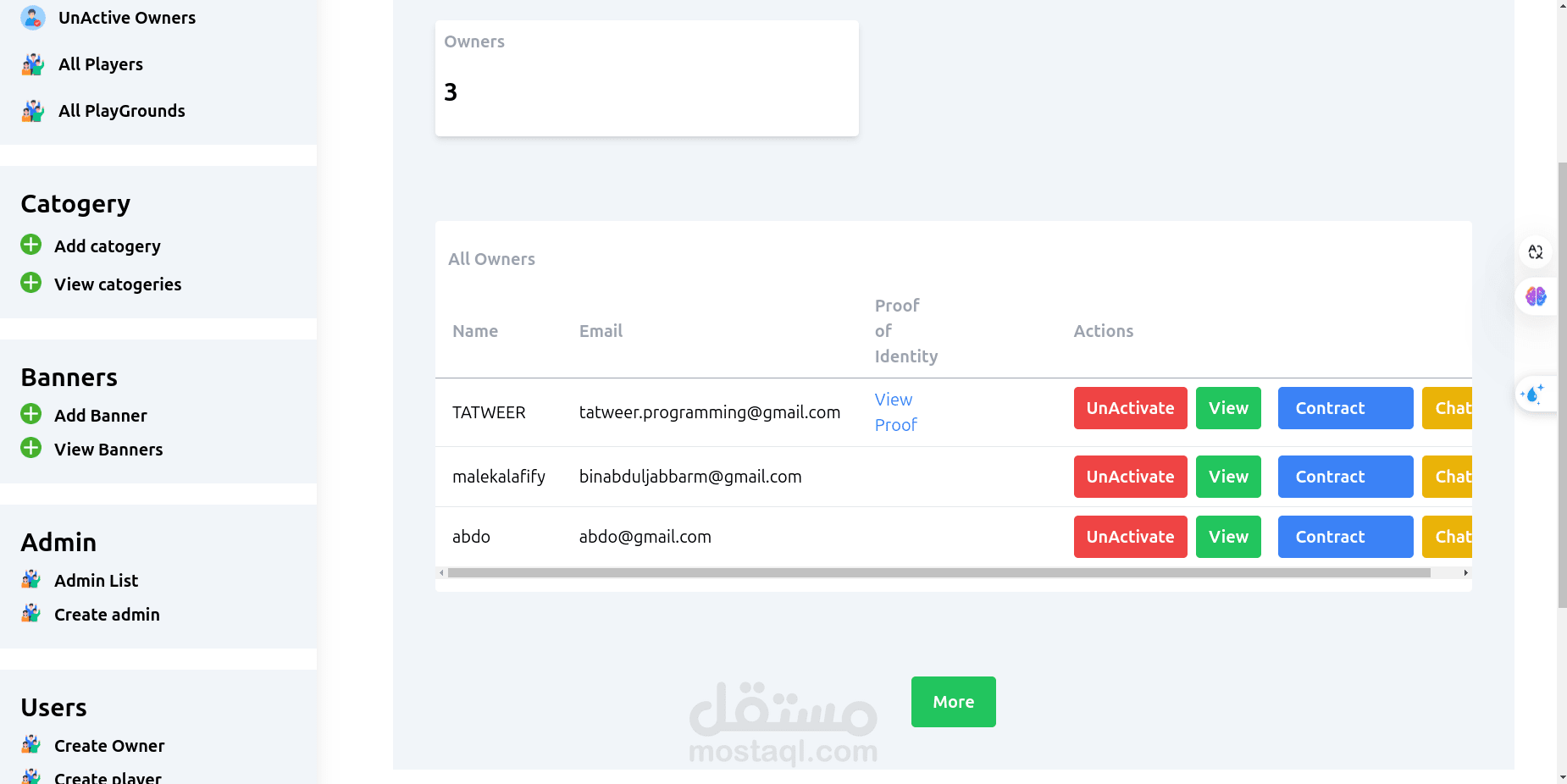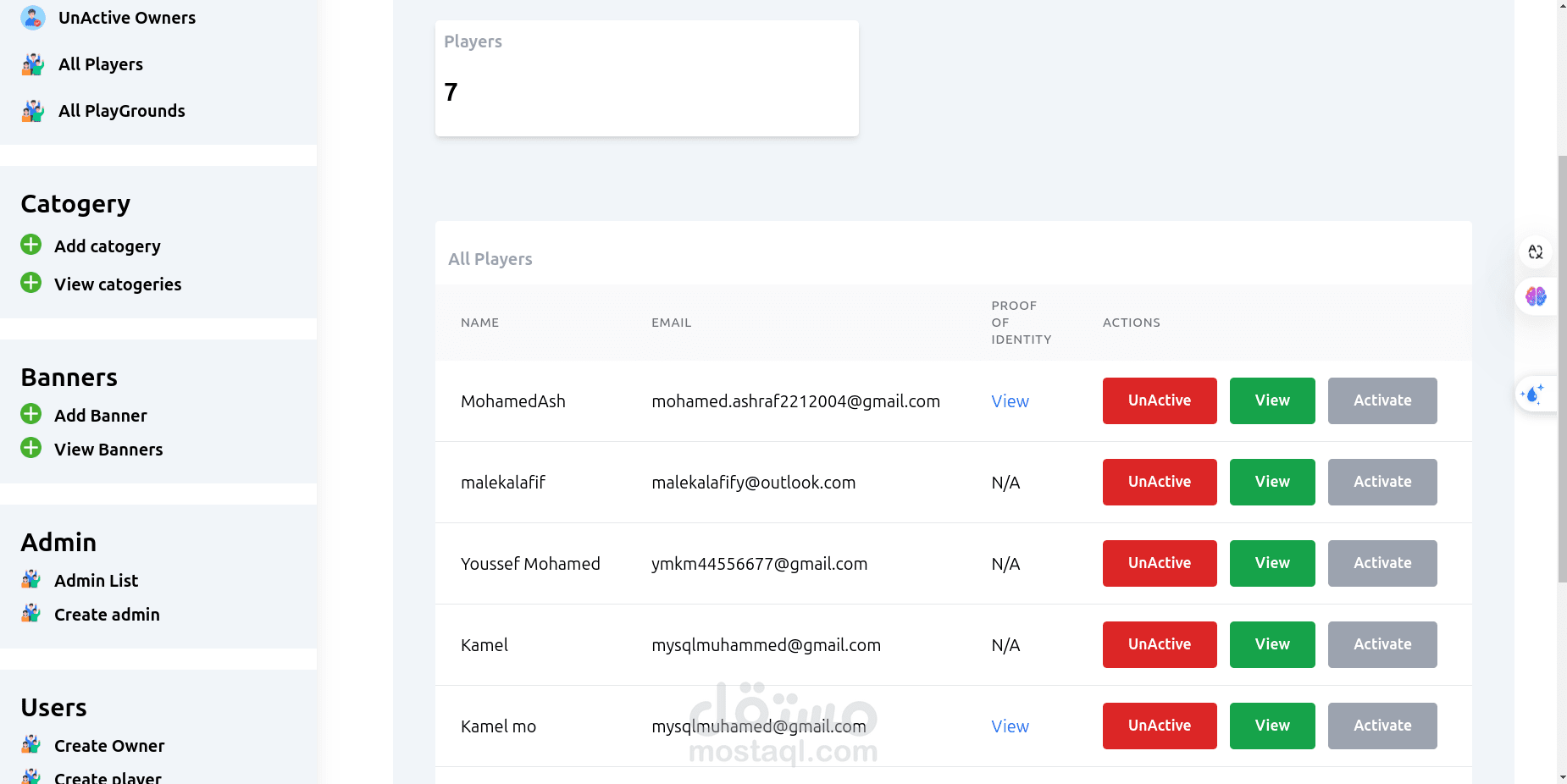 إدارة حسابات أصحاب الملاعب واللاعبين مع صلاحيات مختلفة.