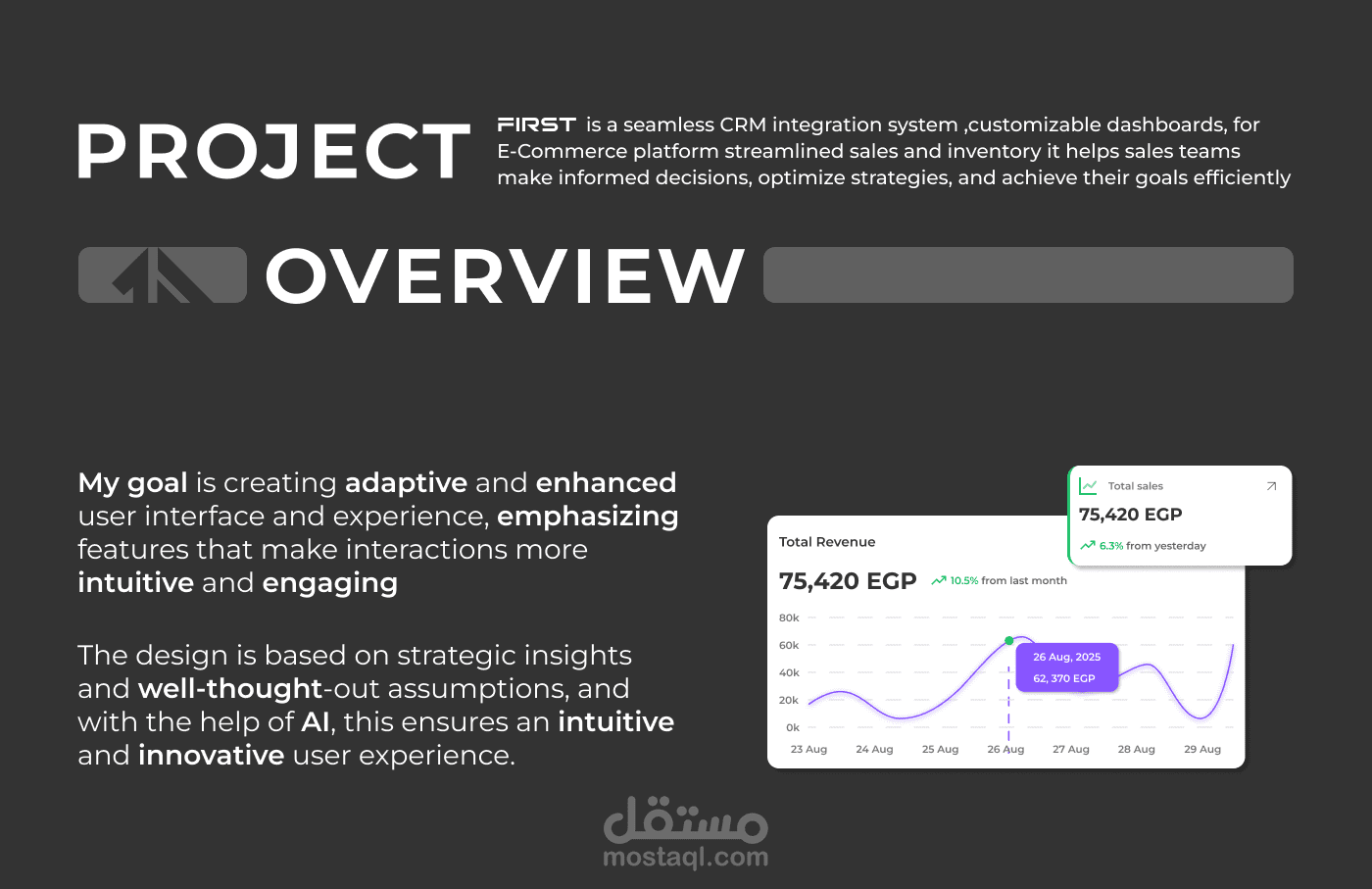 FIRST is a seamless CRM integration system, customizable dashboards, for E-Commerce platform streamlined sales and inventory it helps sales teams make informed decisions, optimize strategies, and achieve their goals efficiently