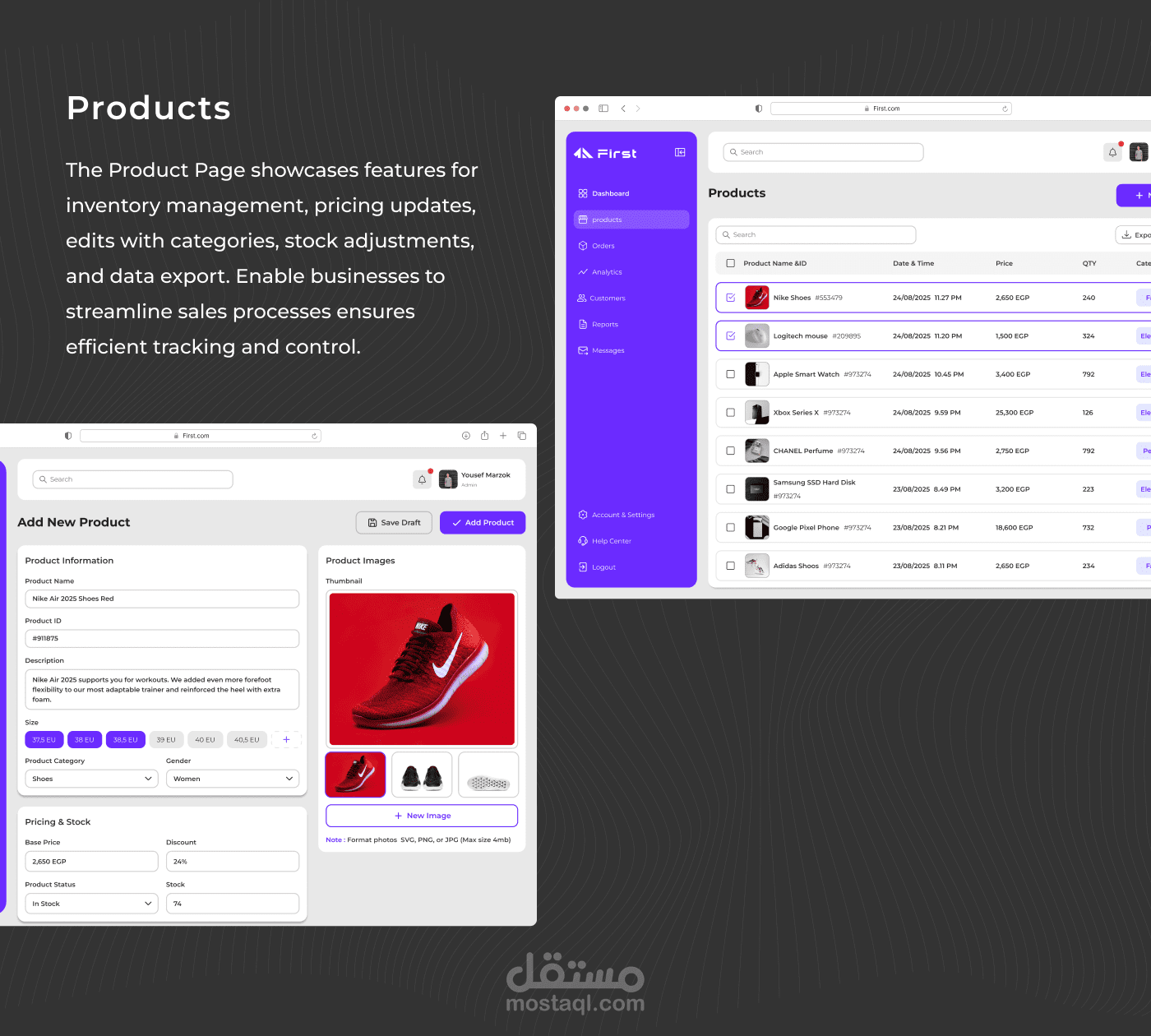 FIRST هو نظام تكامل سلس لإدارة علاقات العملاء، ولوحات معلومات قابلة للتخصيص، لمنصة التجارة الإلكترونية لتبسيط المبيعات والمخزون، ويساعد فرق المبيعات على اتخاذ قرارات مستنيرة وتحسين الاستراتيجيات وتحقيق أهدافهم بكفاءة.