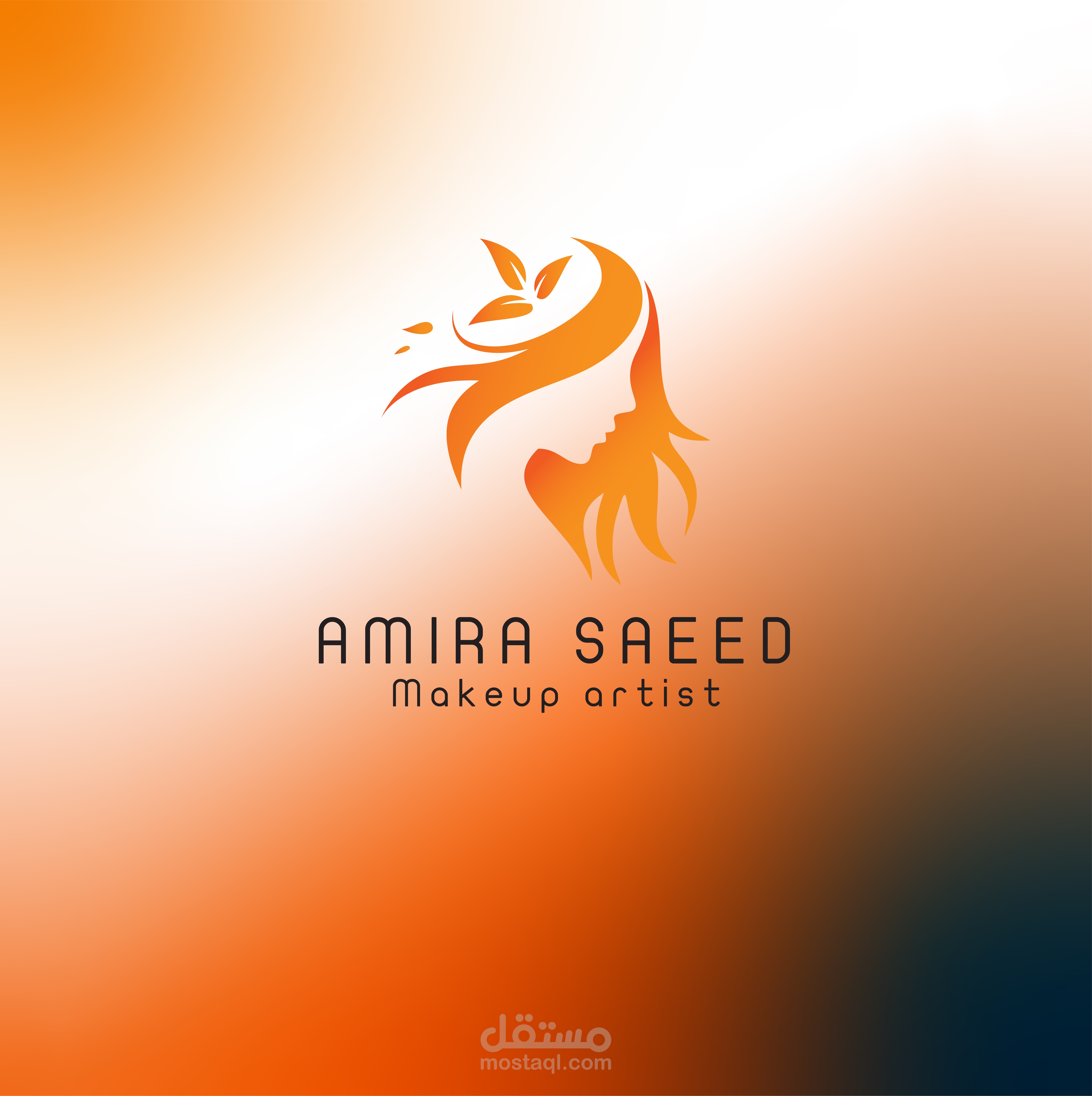 A hair dryer or hairbrush drawn in minimal line art in the background or next to the name.
