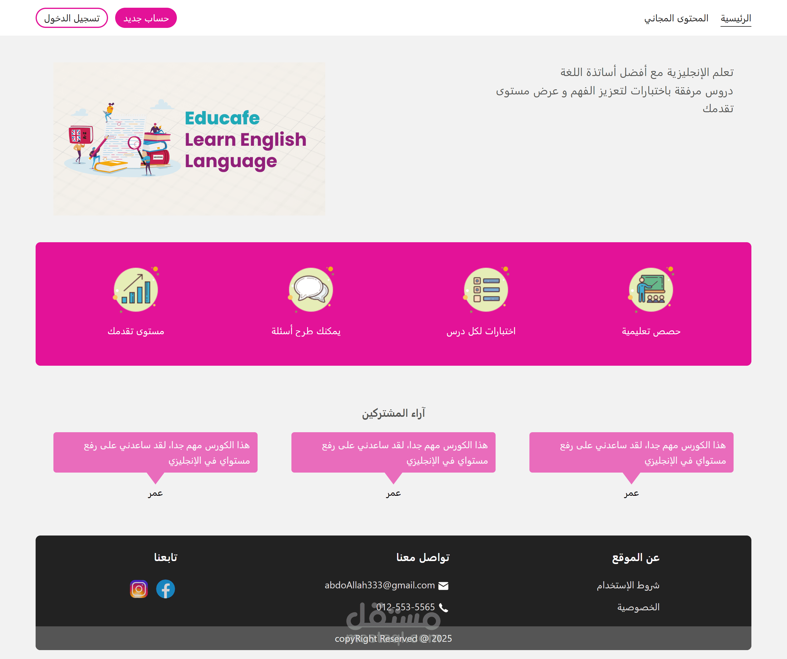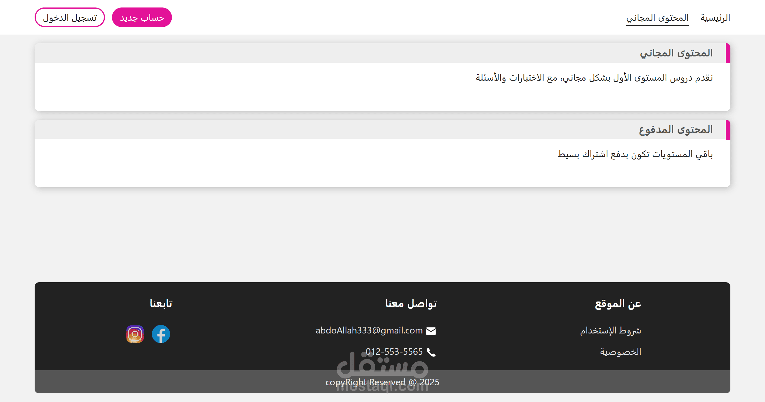 كورس - موقع تعليمي مع dashboard