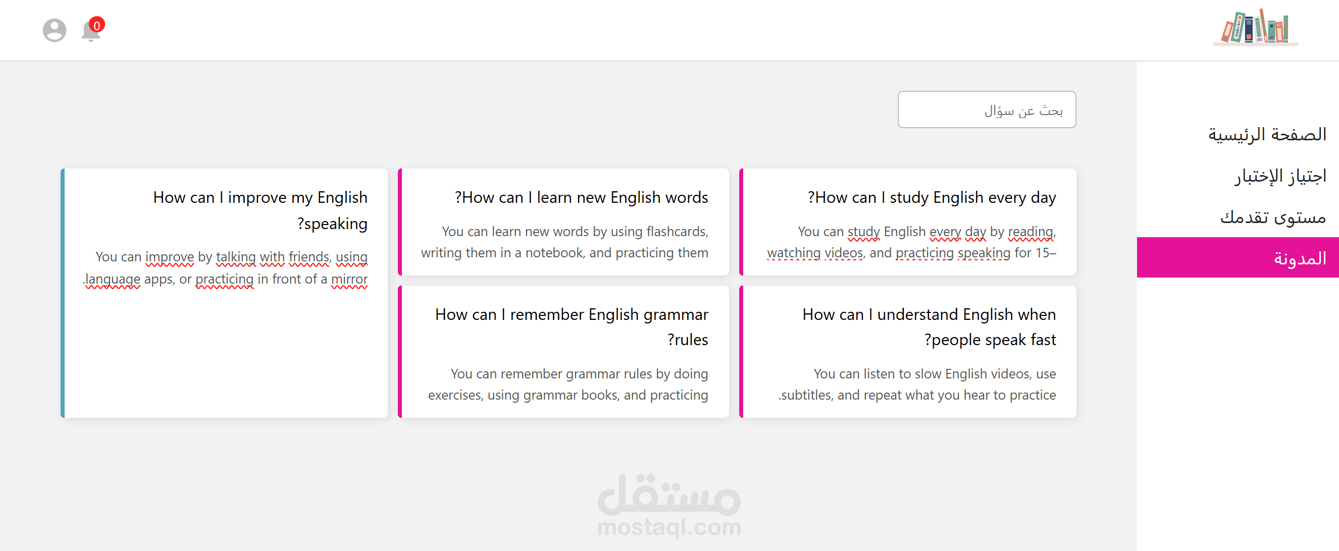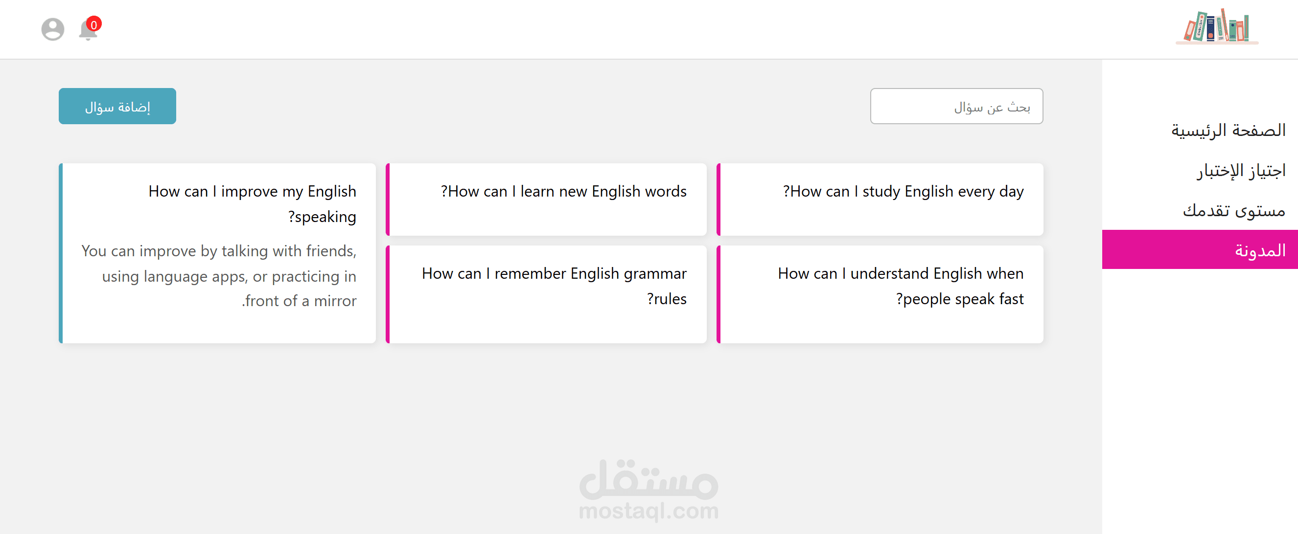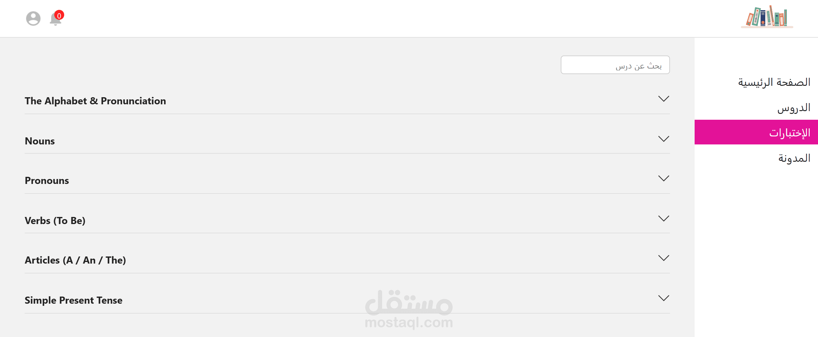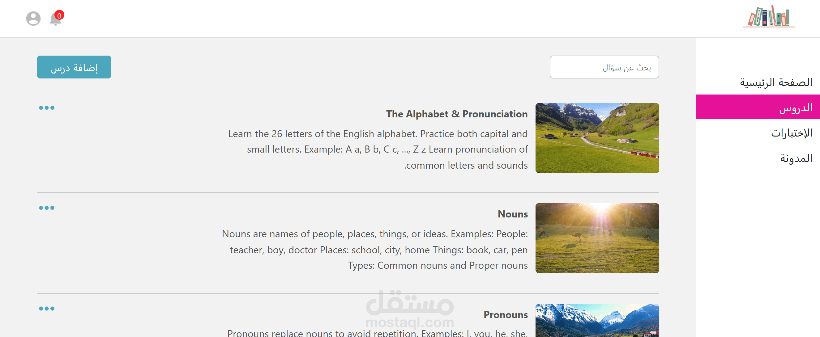 دروس، اختبارات، قسم الأسئلة