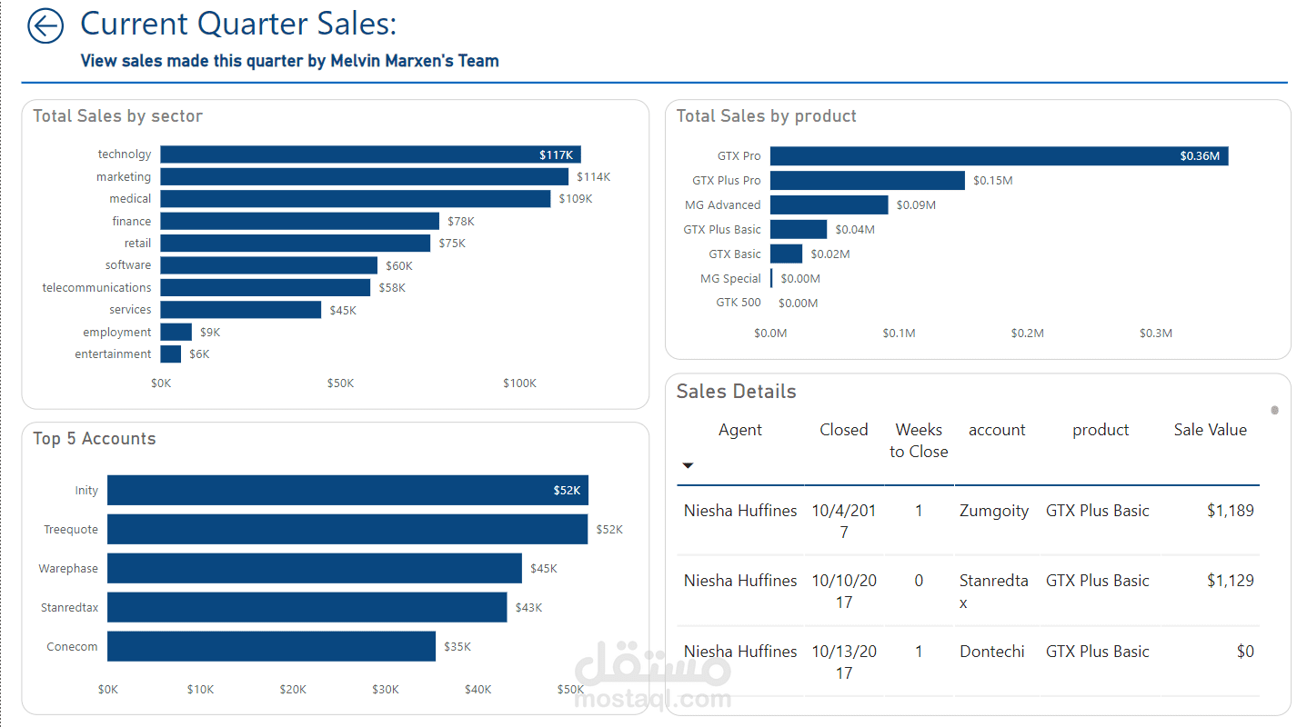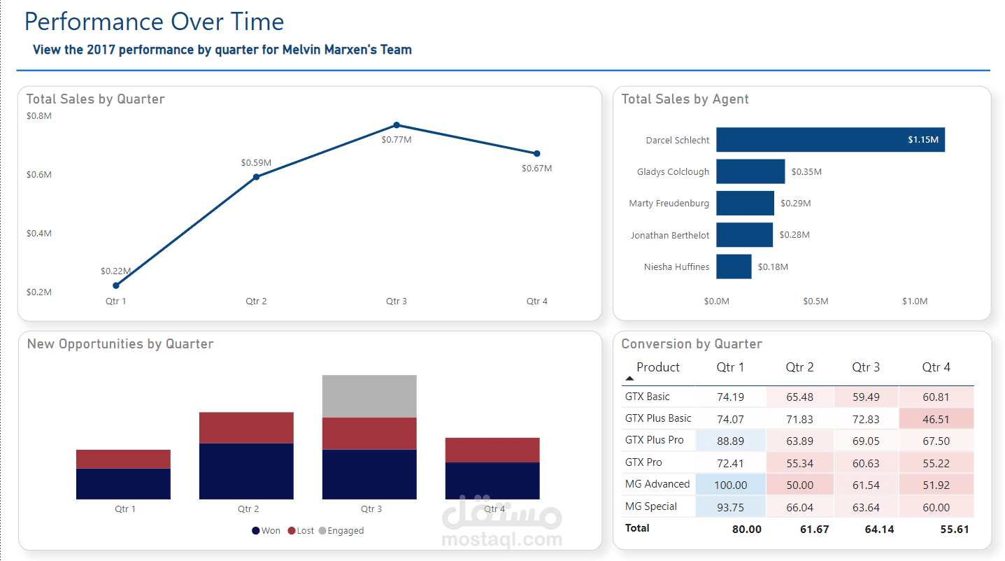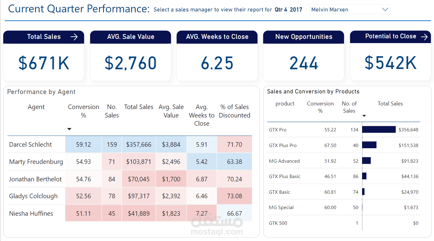 The main goal is to enable to managers to track their team's quarterly performance, the following KPIs to track the team's performance: