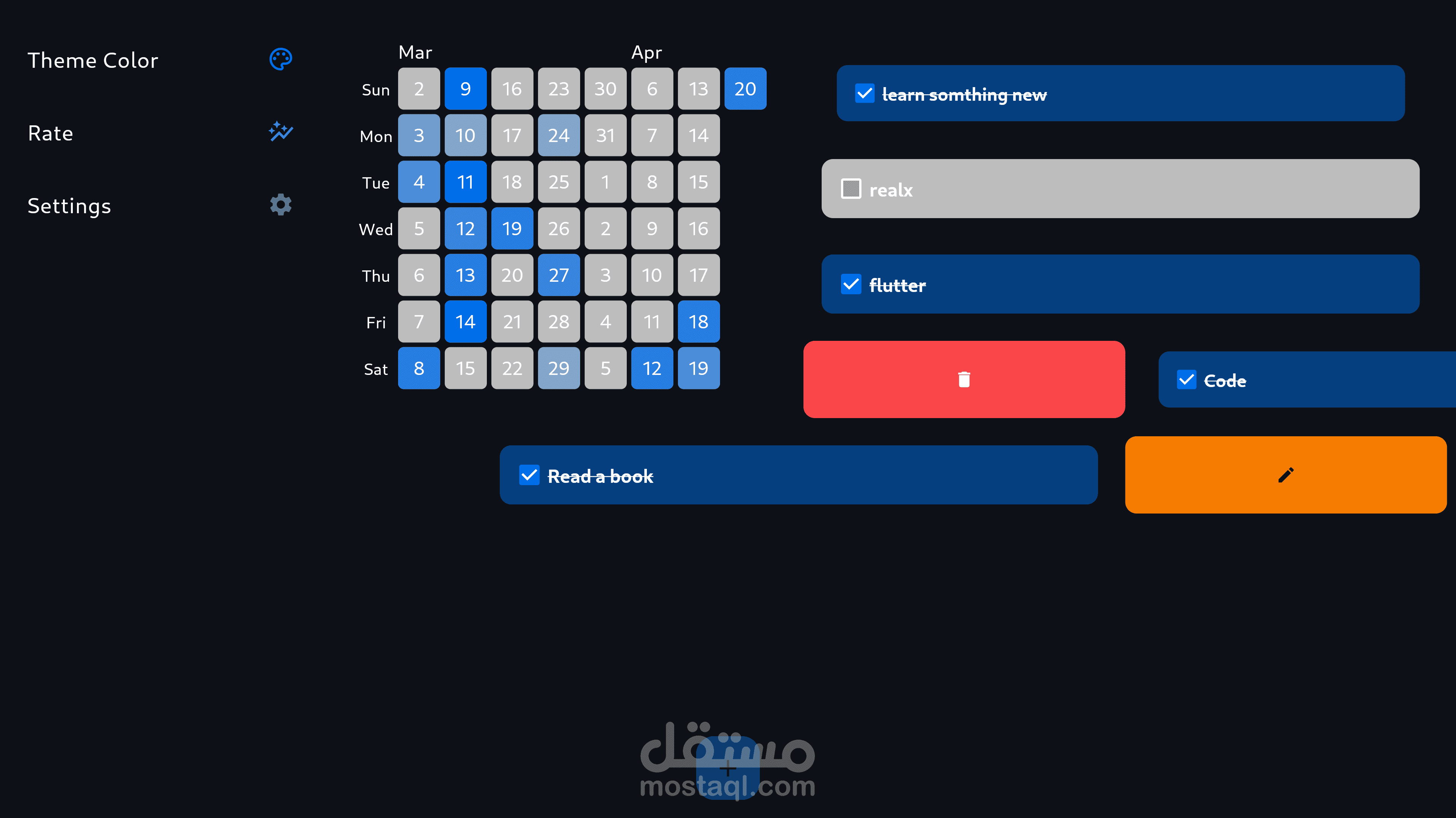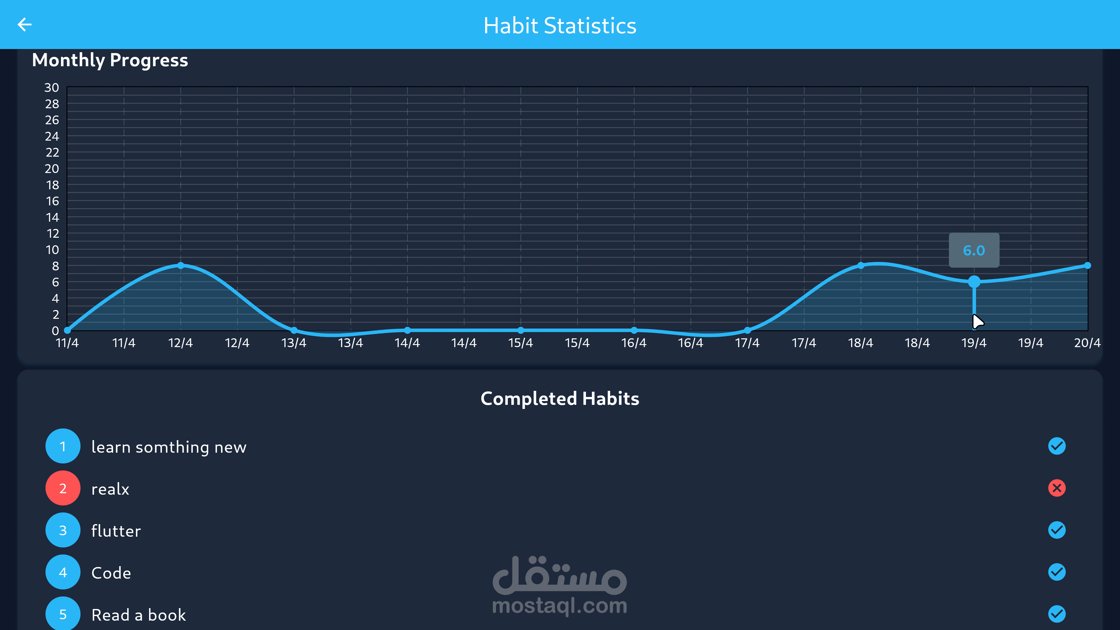 تطبيق أنيق، متجاوب، وسهل الاستخدام لتتبع العادات اليومية الإيجابية — صُمم باستخدام Flutter لمساعدتك على بناء روتين صحي ومستمر بكل سلاسة