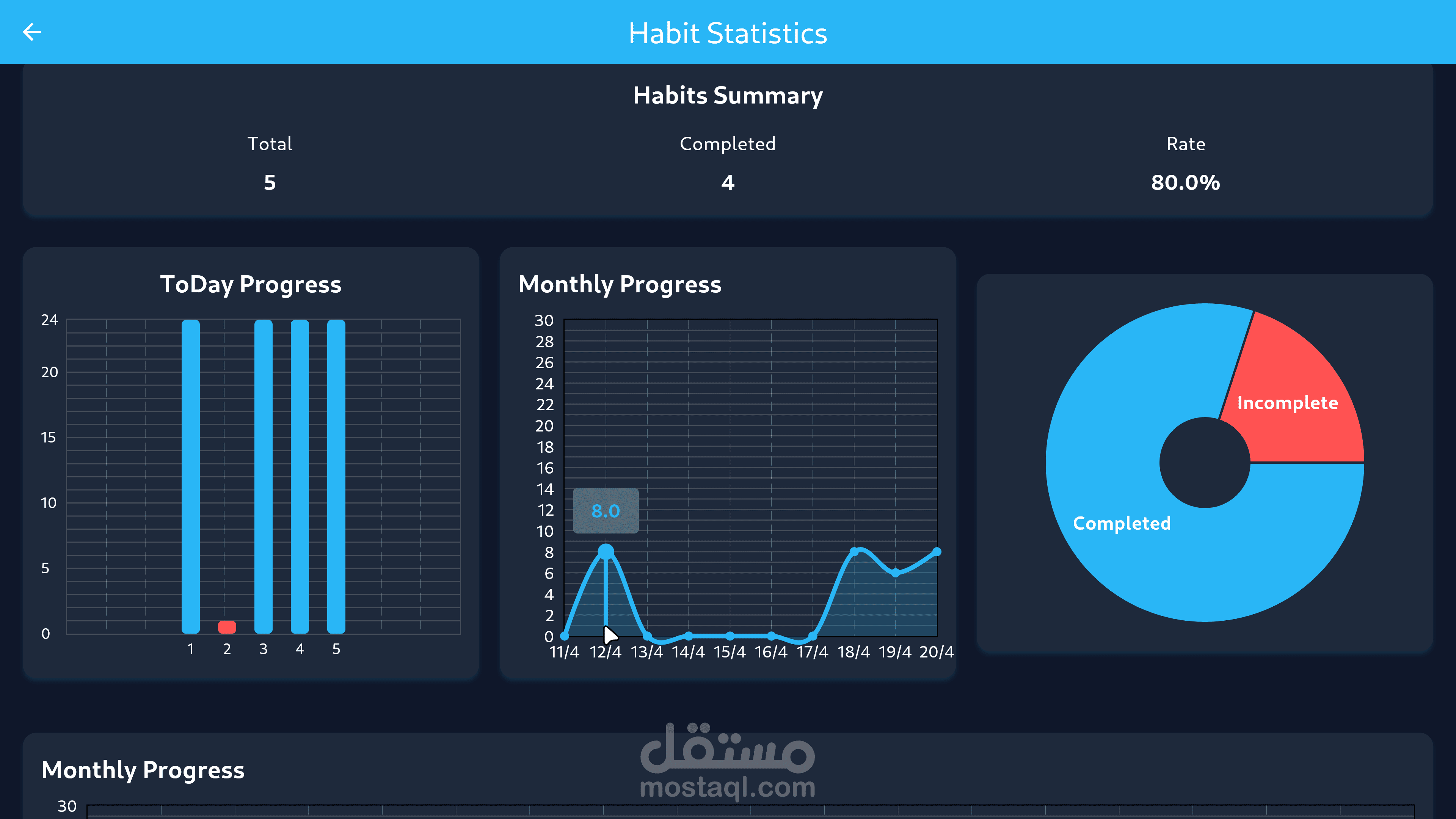 ️ ملخصات أسبوعية وشهرية تساعدك على تصور تطورك مع مرور الوقت.