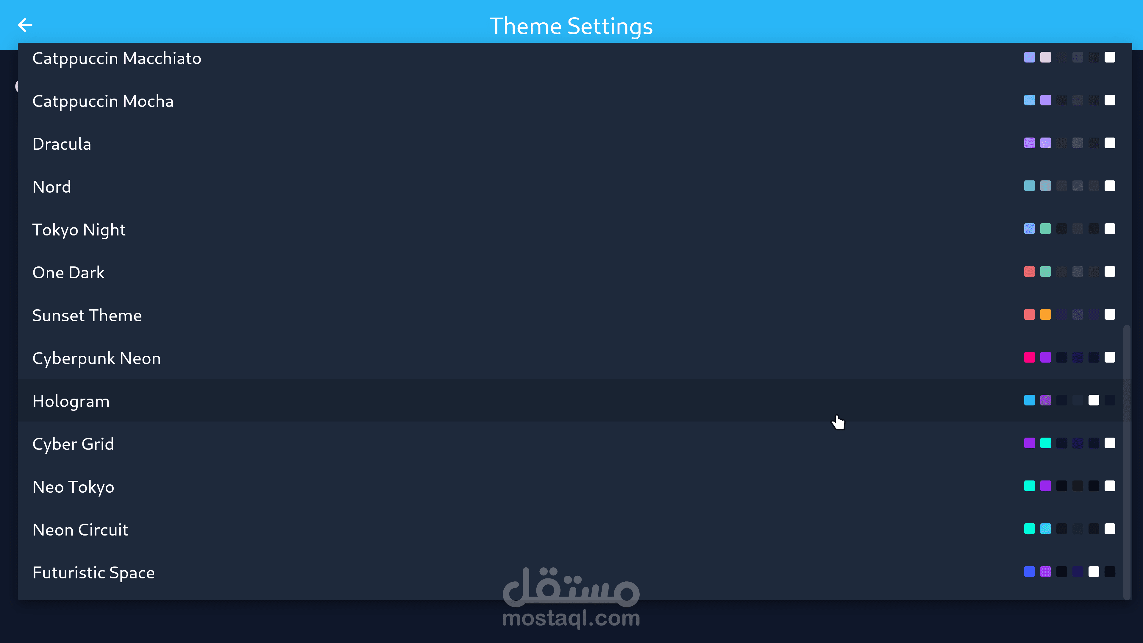 ثيمات جميلة ومتعددة مع دعم للوضع الليلي/النهاري وخيارات تخصيص الألوان.