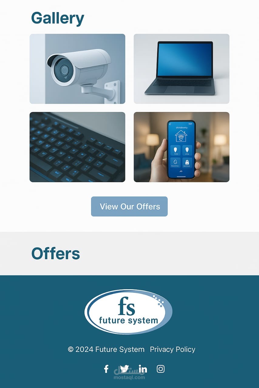 قمت بتصميم وتطوير صفحة هبوط (Landing Page) احترافية لشركة Future System باستخدام مكتبة React.js، بهدف عرض خدمات الشركة التقنية بطريقة عصرية وسهلة التصفح.