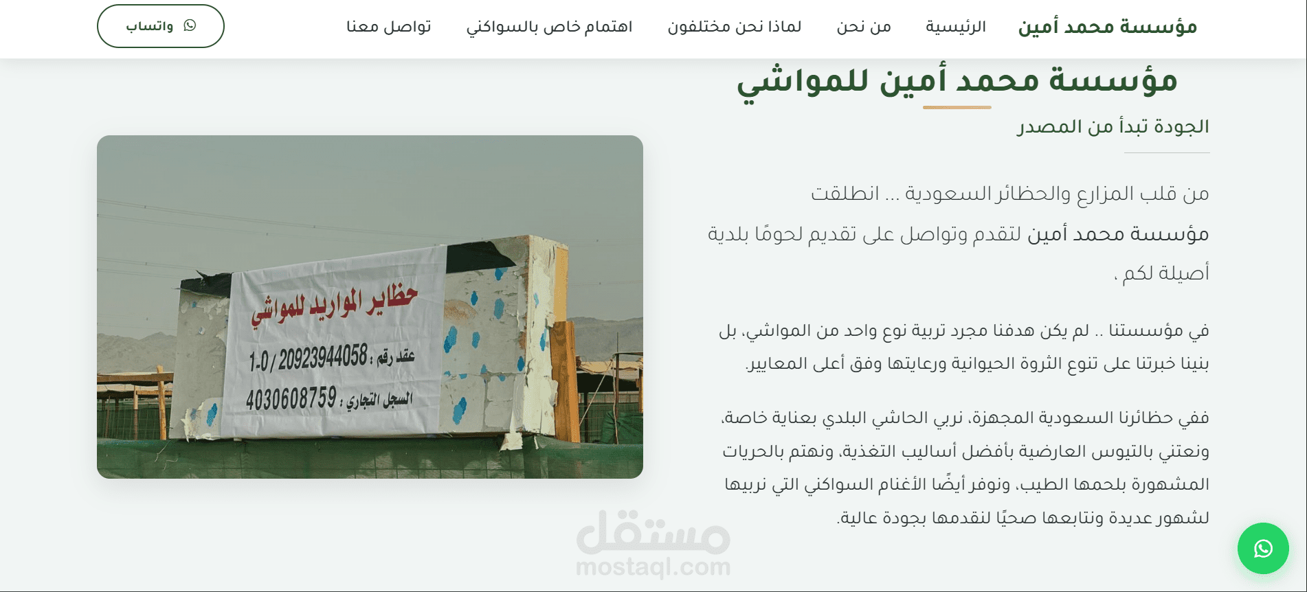 صفحة هبوط (Landing Page) لعرض خدمات المواشي والمعلومات المتعلقة بها بطريقة بسيطة ومنظمة.