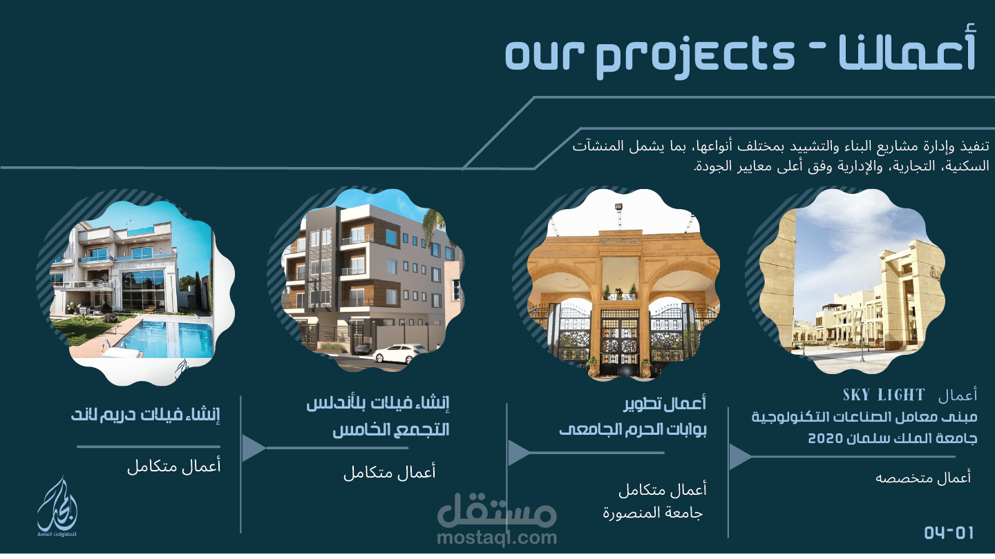 This is a complete company profile I designed for ELMAJD, a business specializing in real estate, construction