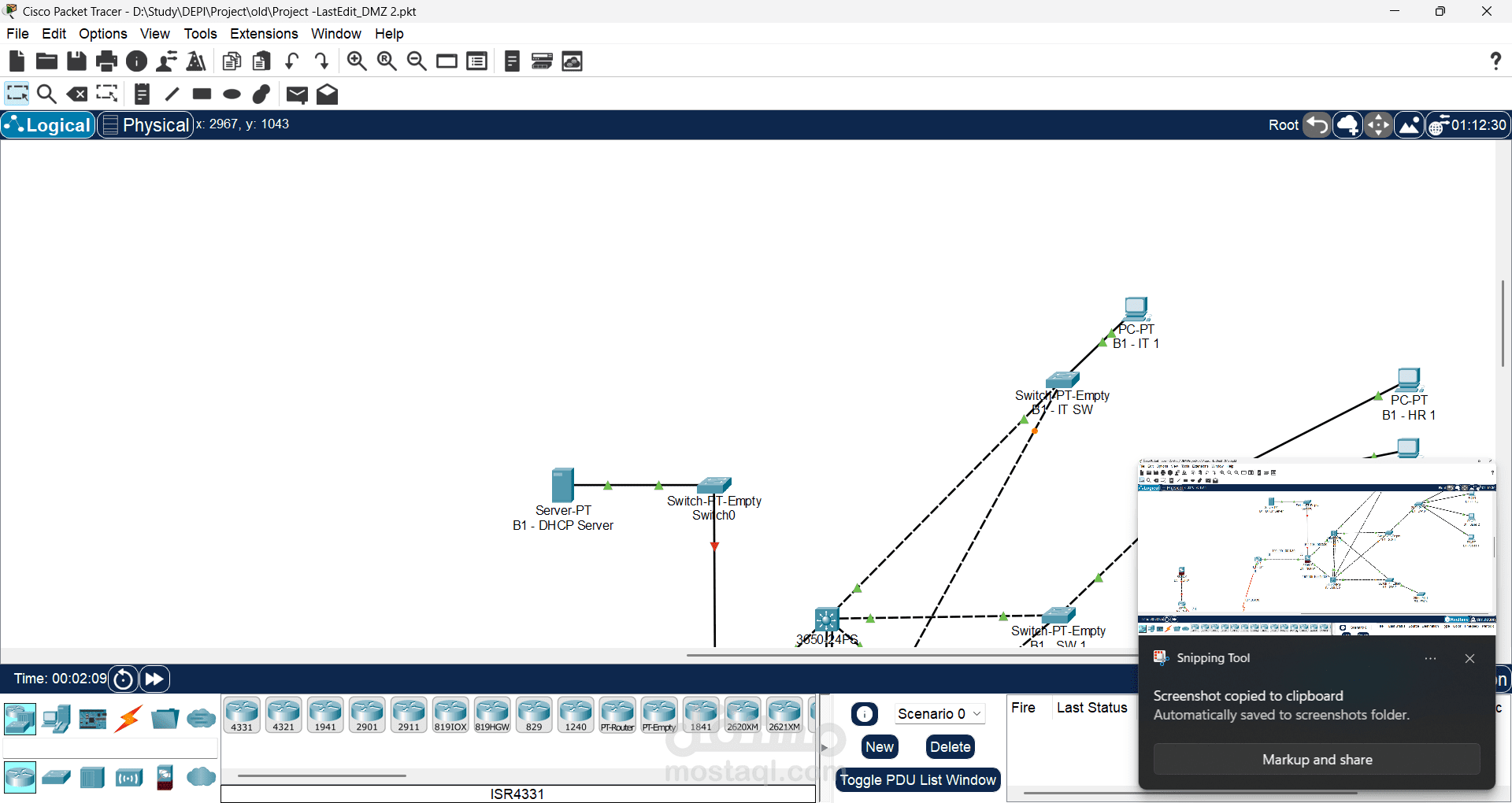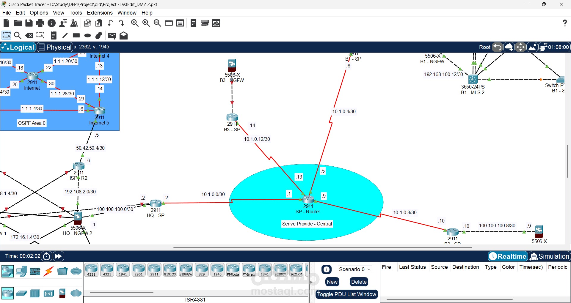 This project focuses on designing and implementing a secure, scalable, and redundant network infrastructure for a banking environment. The network connects a main office (headquarters) with multiple branch offices, ATMs, and data center facilities using secure and reliable technologies.