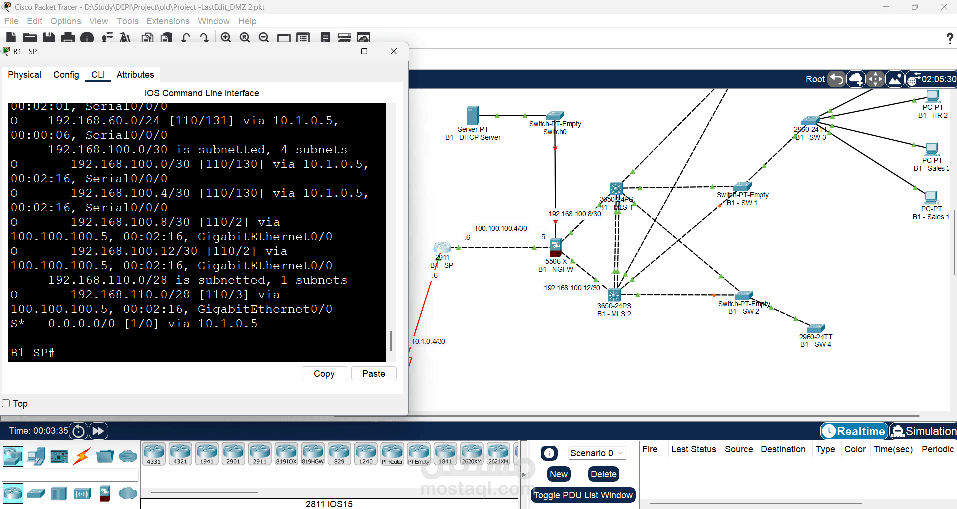 The final network design provides high availability, secure remote access, efficient traffic segmentation, and centralized control. The use of best practices in security and routing ensures that the network is robust, fault-tolerant, and ready for real-world deployment.