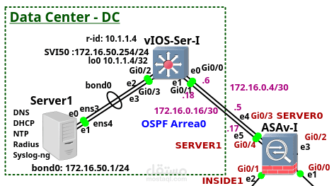 Server is connected to vIOS-Ser-I using the internal subnet 172.16.50.0/24.