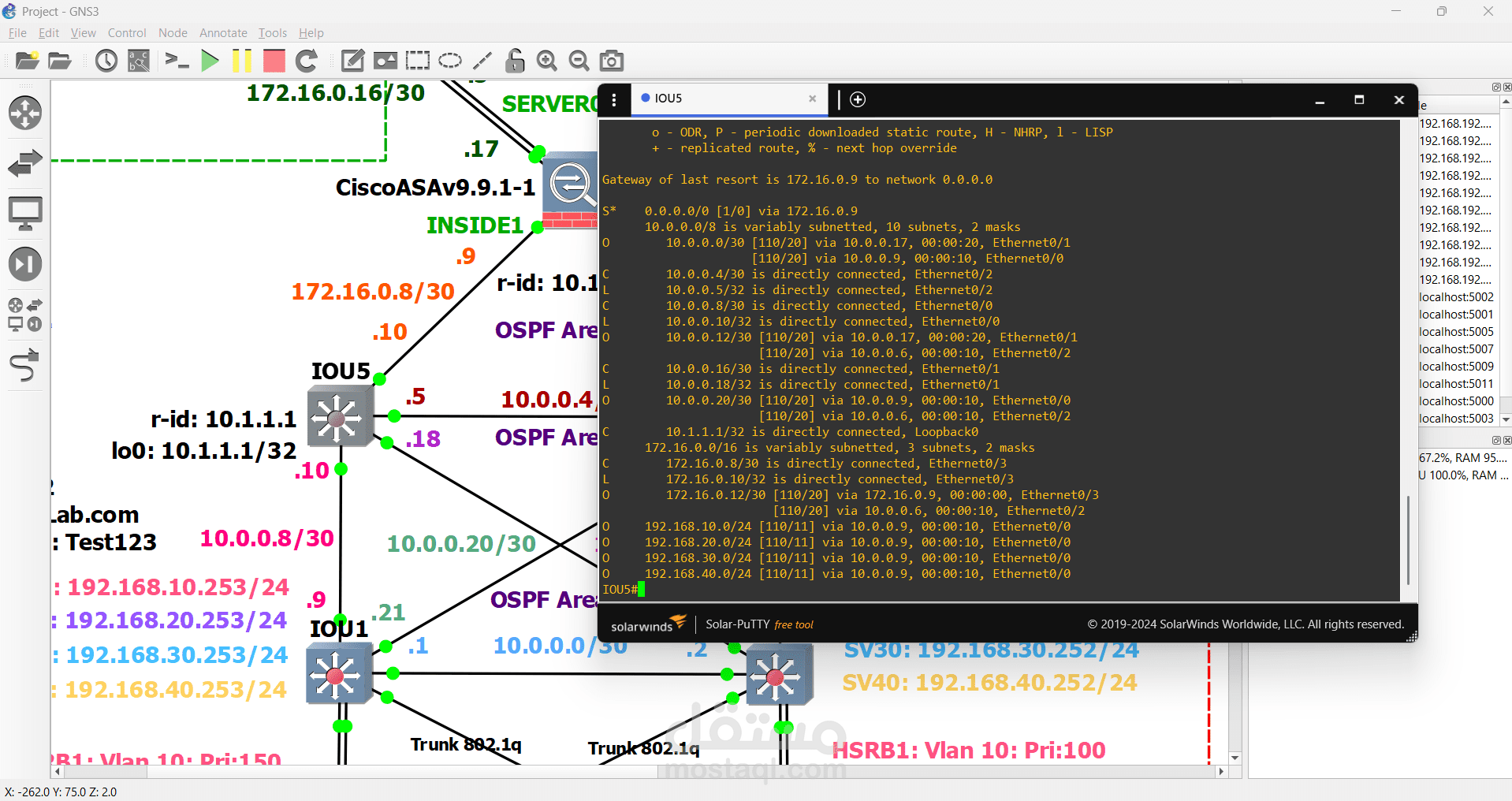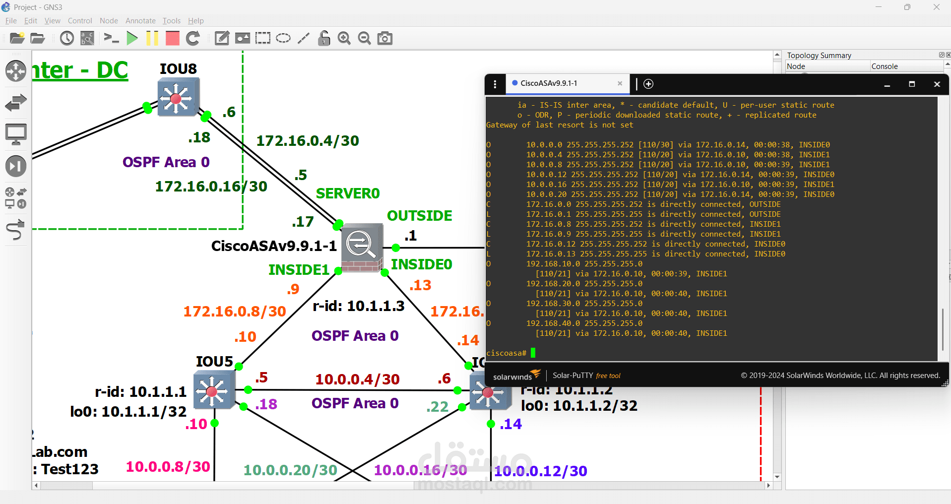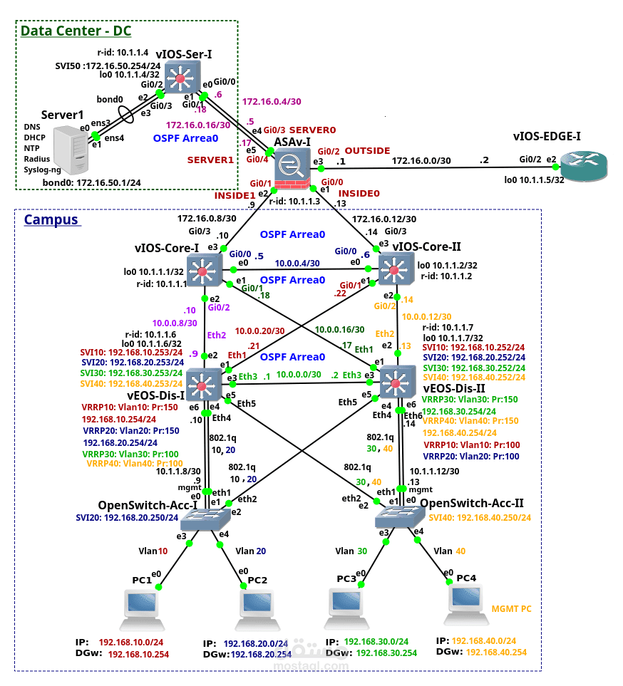 vIOS-Core-I and vIOS-Core-II are connected via OSPF Area 0.