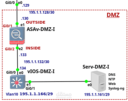 A public-facing server (Serv-DMZ-I) is located here, offering: