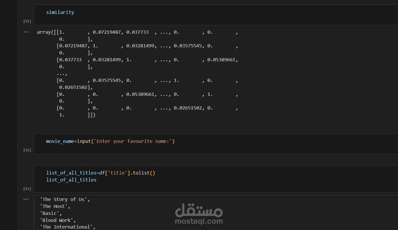 يستخدم تشابه جيب التمام (Cosine Similarity) لإيجاد أفلام متشابهة