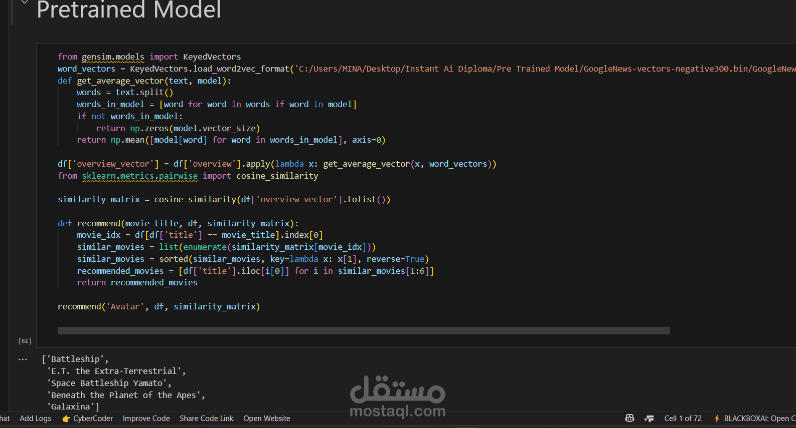 هذا المشروع يقدم نظام توصية أفلام متقدم يعتمد على تقنيات الذكاء الاصطناعي والتعلم الآلي، حيث يجمع بين النهج التعاوني (Collaborative Filtering) والنماذج المُدرَّبة مسبقًا (Pretrained Models) لتقديم توصيات دقيقة وشخصية للمستخدمين.