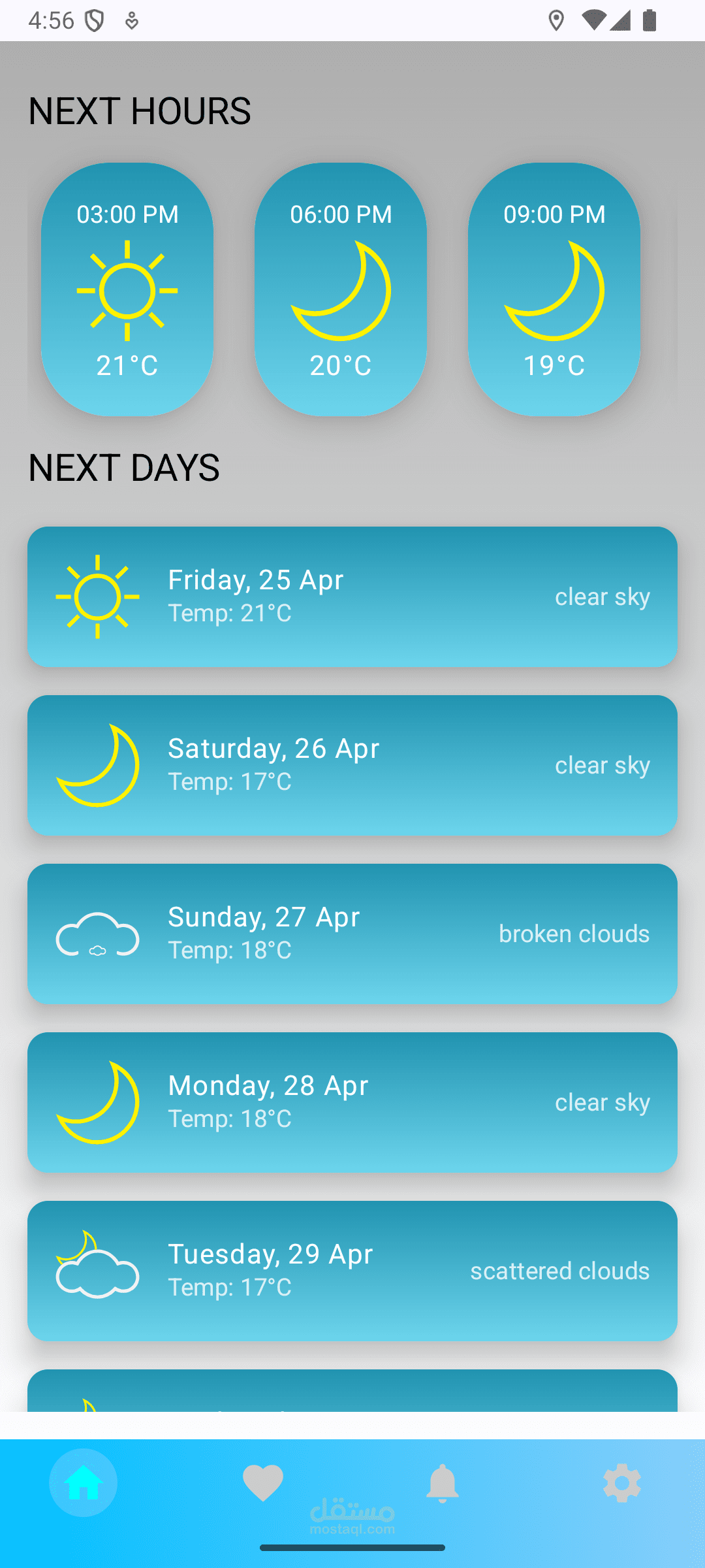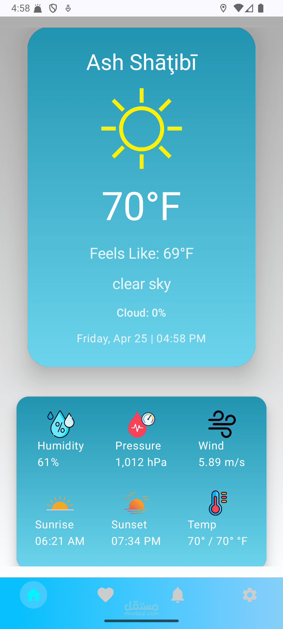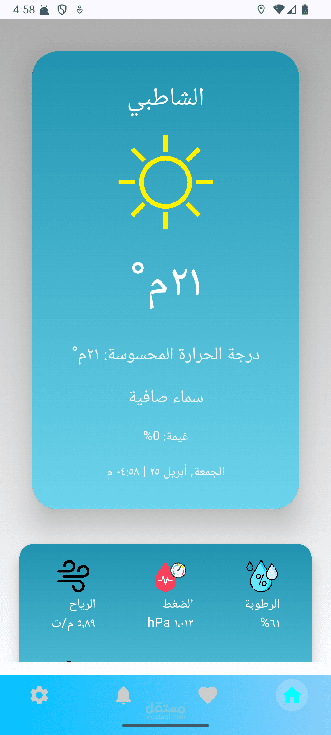 تُعرض البيانات بشكل مباشر عند تغيّر الموقع أو التحديث اليدوي، مع معالجة سلسة لحالات التحميل، الخطأ، وعدم الاتصال بالإنترنت.