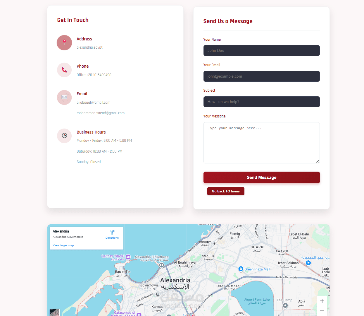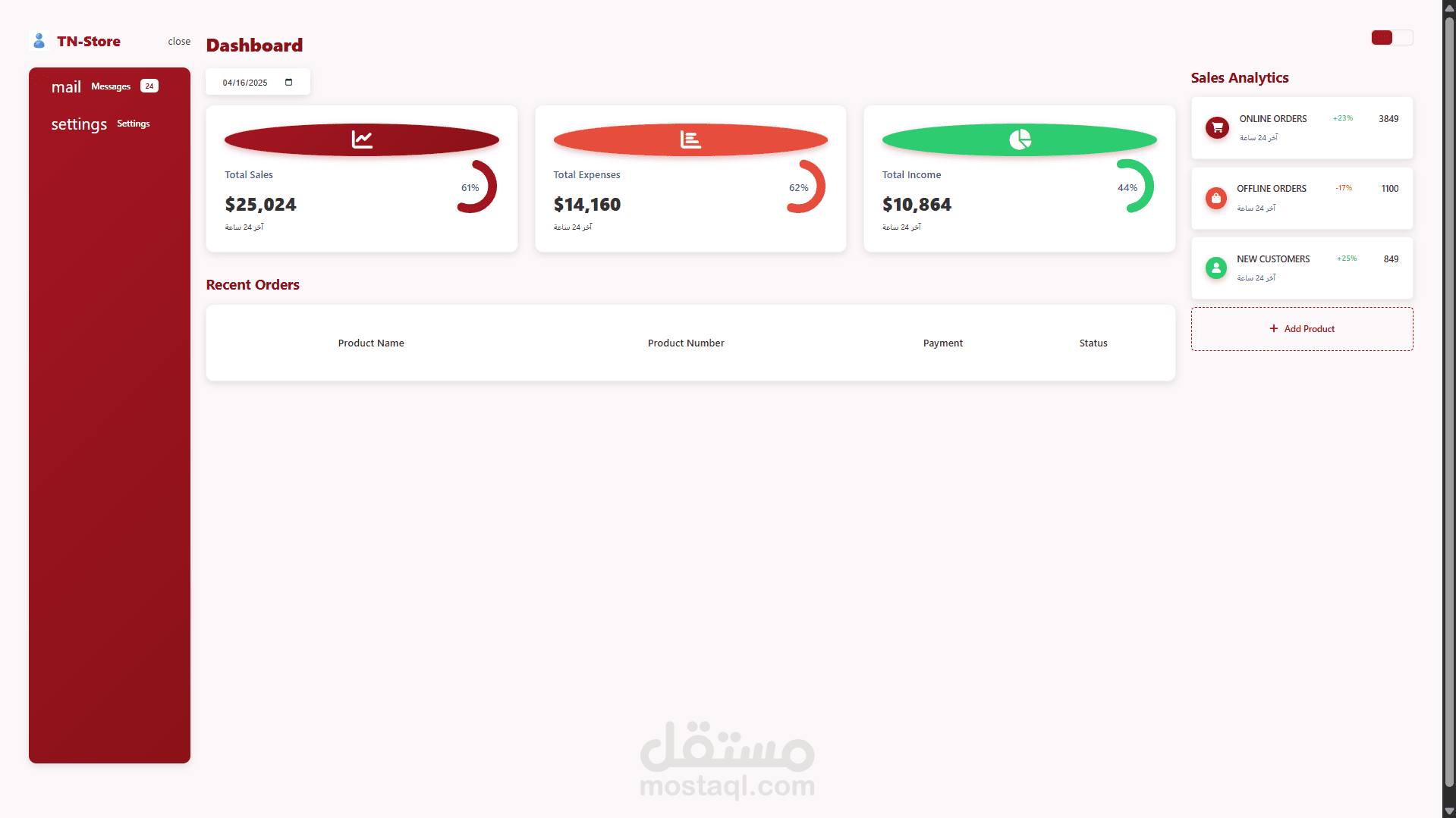 شريط علوي (Header): باللون الأحمر الداكن، يحتوي على: