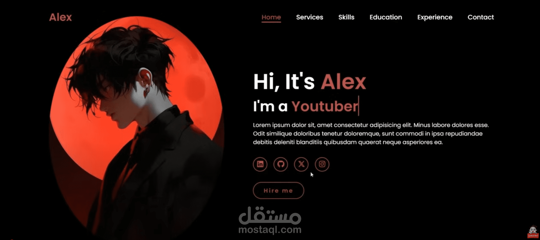 قسم البطل (Hero Section): يحتل الجزء الأكبر من الشاشة ويتميز بـ: