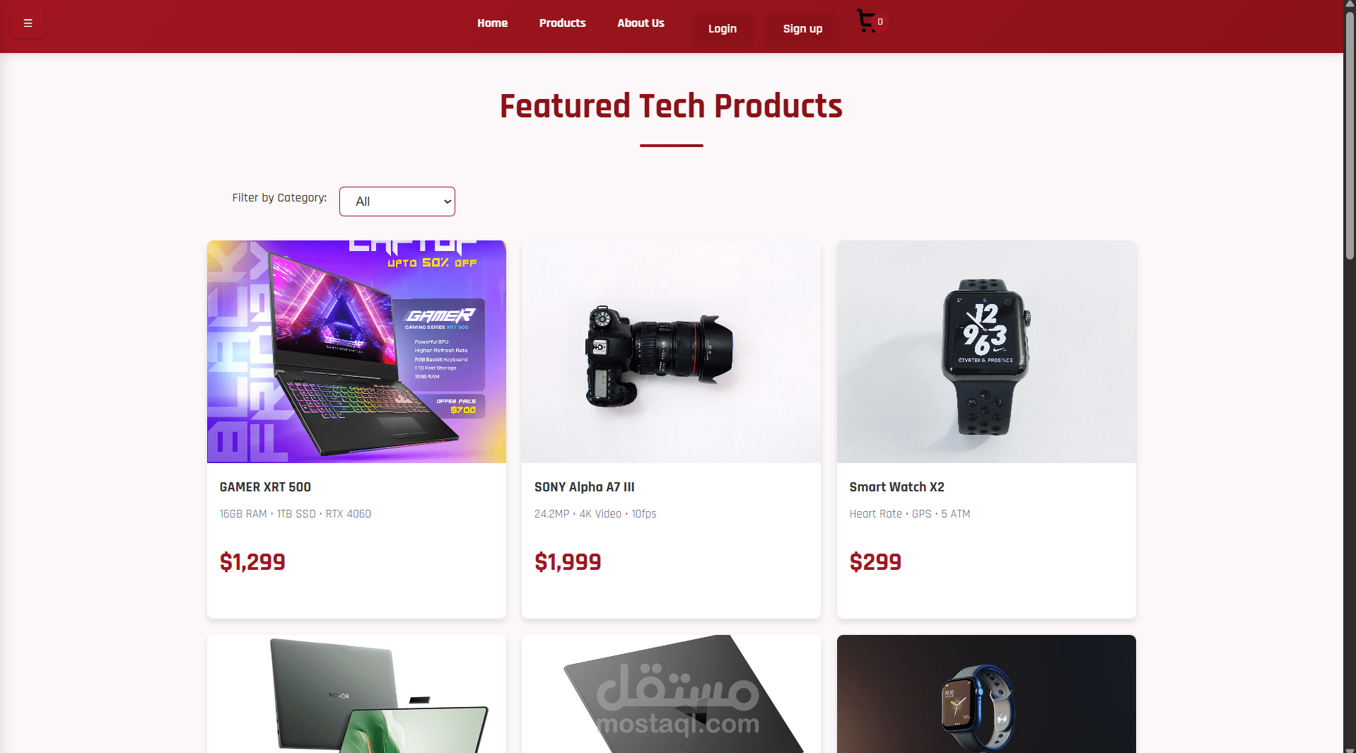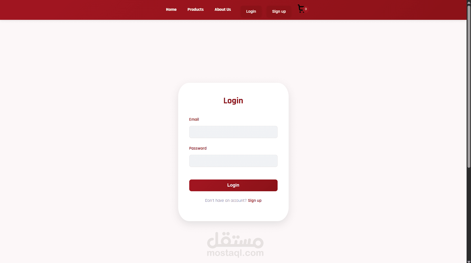 روابط تسجيل الدخول ("Login") وإنشاء حساب ("Sign up") على اليمين.