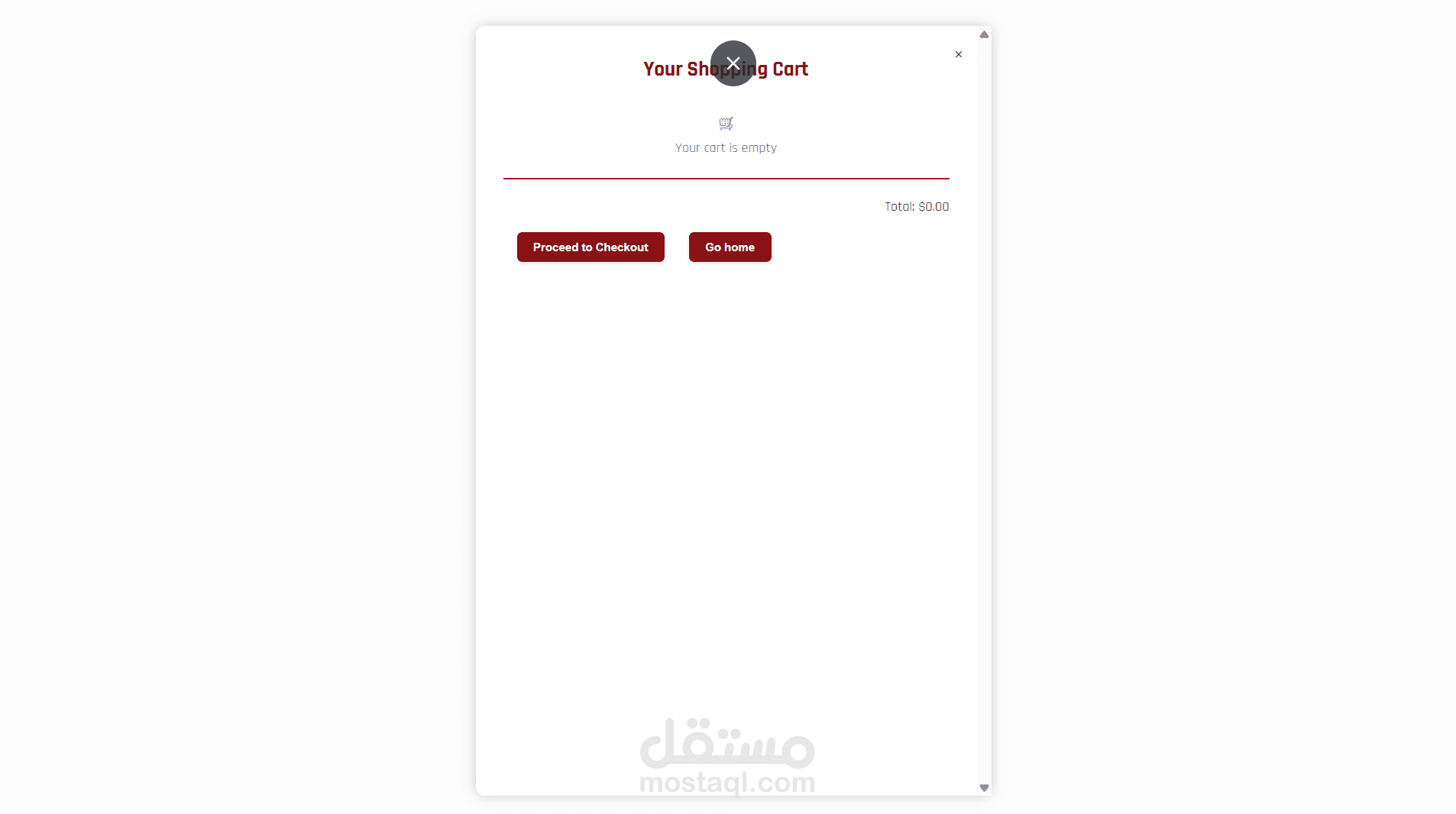 أيقونة عربة تسوق فارغة على أقصى اليمين.