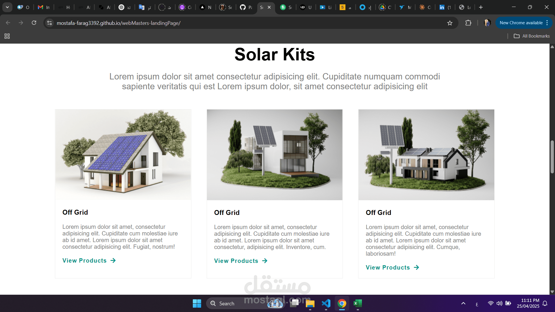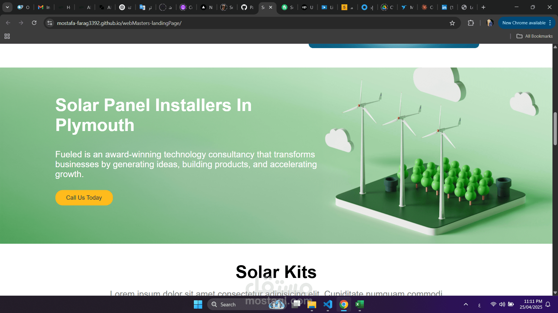 تصميم صفحة هبوط احترافية للتسويق لخدمات الطاقة الشمسية، تركّز على الرسالة التسويقية والعناصر الإقناعية، وتقدم تجربة مستخدم سلسة وواجهة منظمة وجذابة.