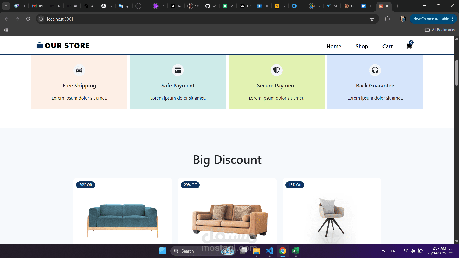 موقع تجارة الكترونية متكامل باستخدام HTML,CSS,Javascript and React.js