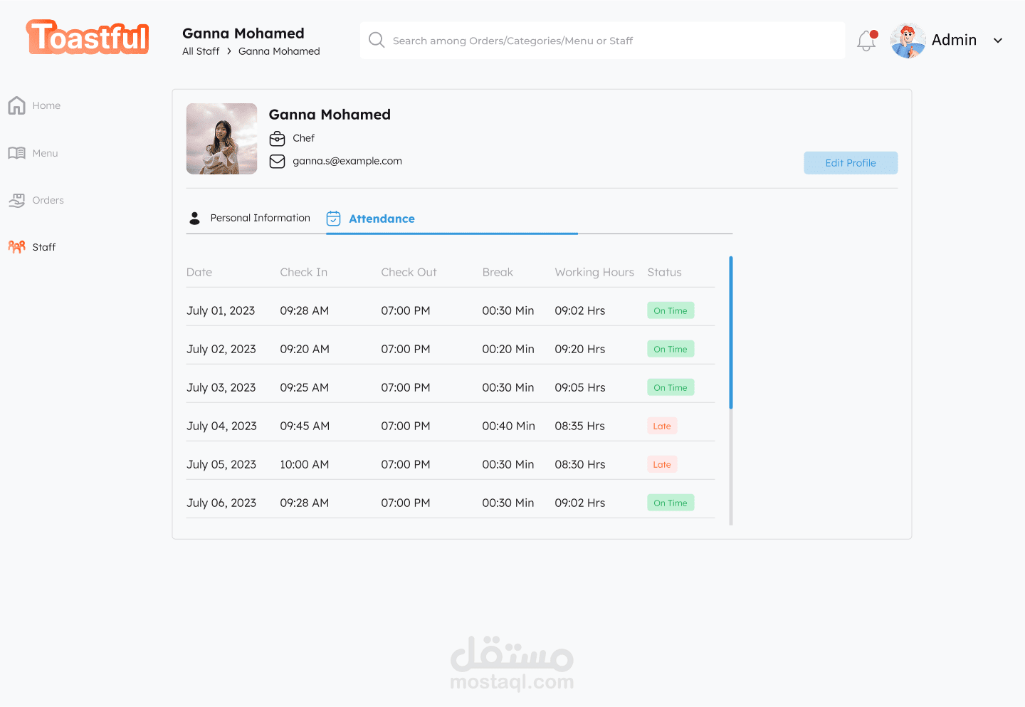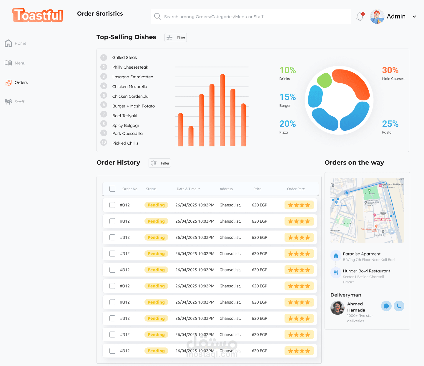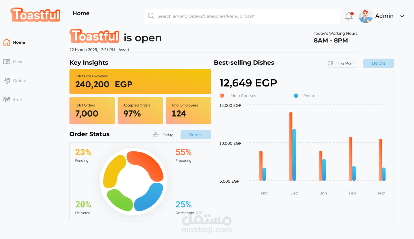 Designed a clean, structured dashboard for restaurant management with a focus on clarity, data visualization, and ease of use.
